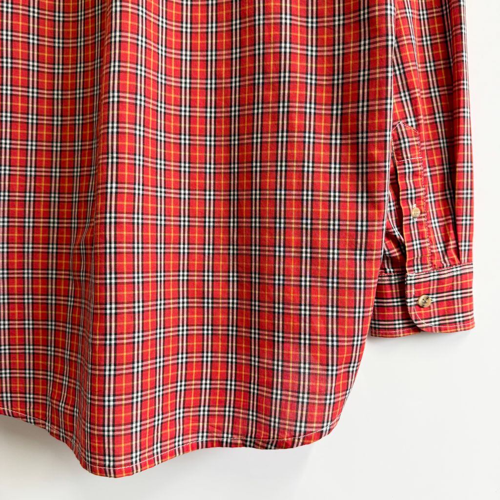 Burberrys バーバリー ボタンダウンシャツ コットンシャツ チェック柄 ポケット付き 長袖シャツ ワンポイントロゴ 刺繍 エンジ×黄色×白×黒 Lサイズ No.H593