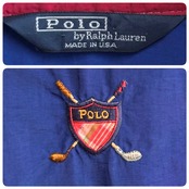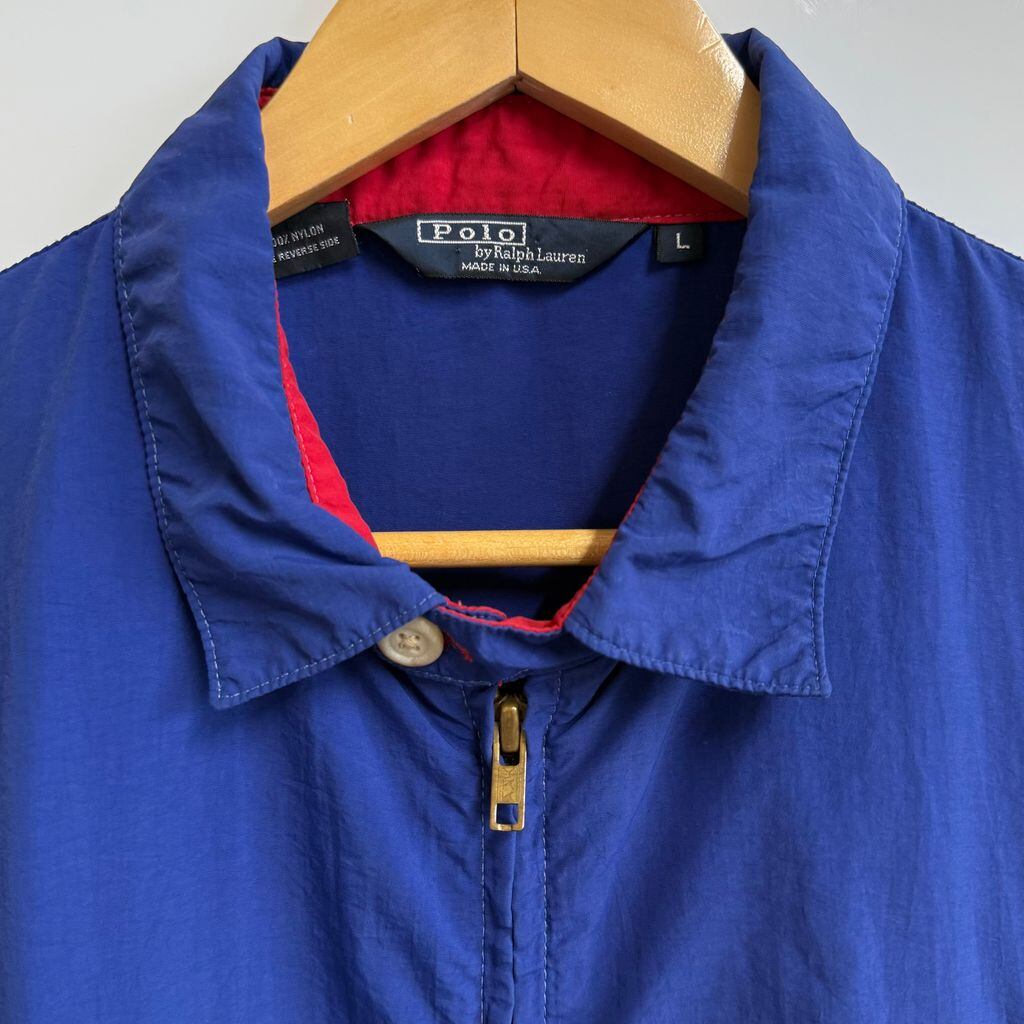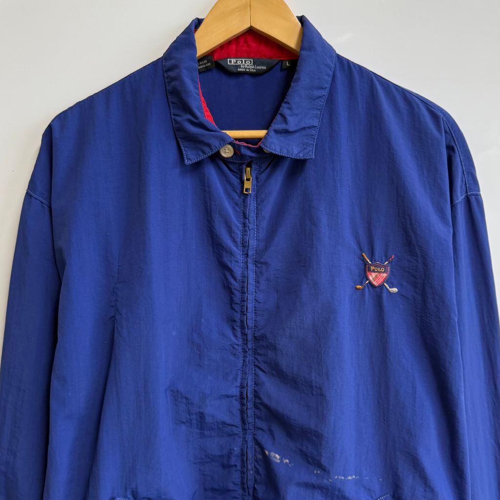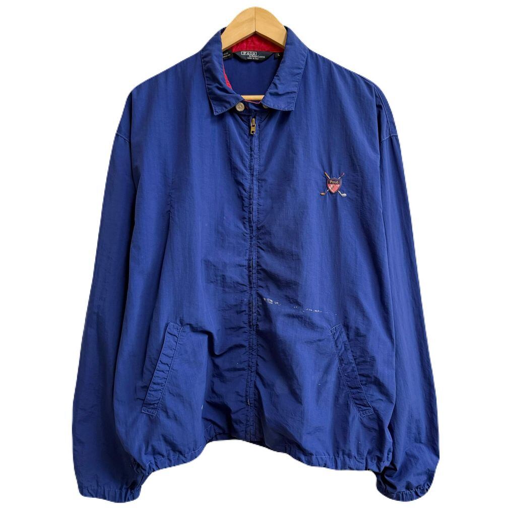 USA製 Polo Ralph Lauren ポロ ラルフローレン スウィングトップ ナイロンジャケット ブルゾン フルジップ ポケット付き 青 ブルー Lサイズ No.H604