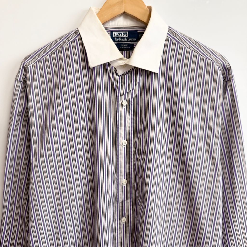 ポロラルフローレン REGENT CLASSIC FIT コットンシャツ ストライプ 長袖シャツ 白×紫×多色 No.H614