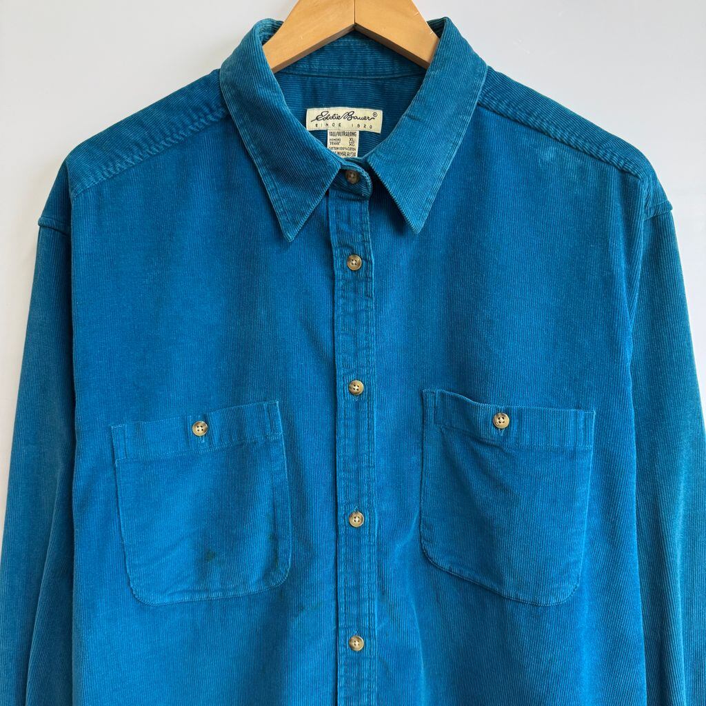 Eddie Bauer エディーバウアー コーデュロイシャツ コットンシャツ 無地 ポケット付き 長袖シャツ ターコイズブルー XLサイズ No.H617