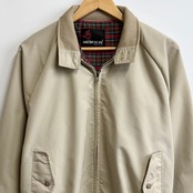 USA製 AMERICAN JAC ハリントンジャケット 裏地チェック柄 スウィングトップ ジャケット ブルゾン フルジップ ポケット付き ベージュ No.H625