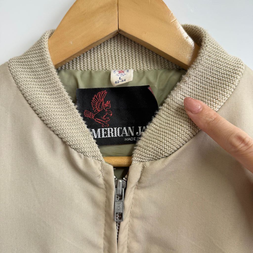 USA製 AMERICAN JAC ダービージャケット カップショルダー フルジップ ポケット付き ベージュ Lサイズ No.H626
