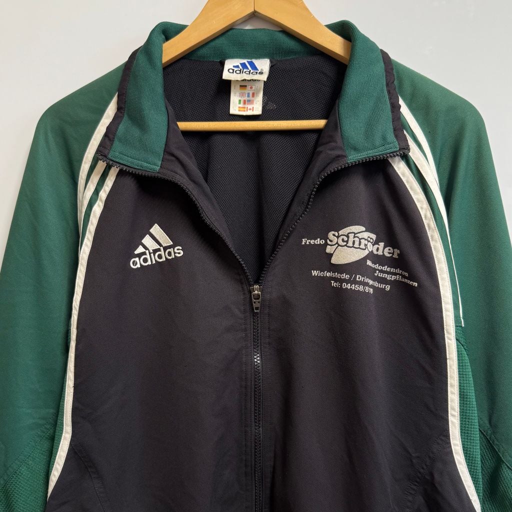 adidas アディダス トラックジャケット ジャージ 裏地メッシュ フルジップ ポケット付き 緑×黒 Lサイズ No.H637