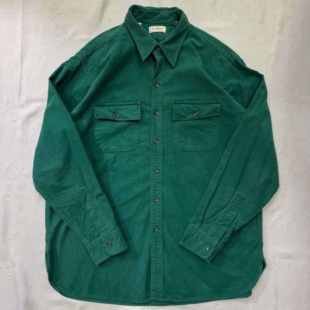 L.L.Bean" Chamois Shirt エルエルビーン シャモアクロス シャツ 長袖シャツ ポケット付き 緑 No.E798