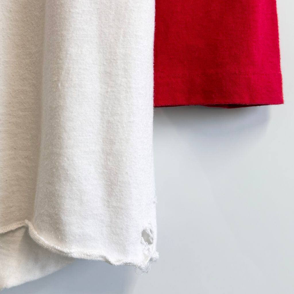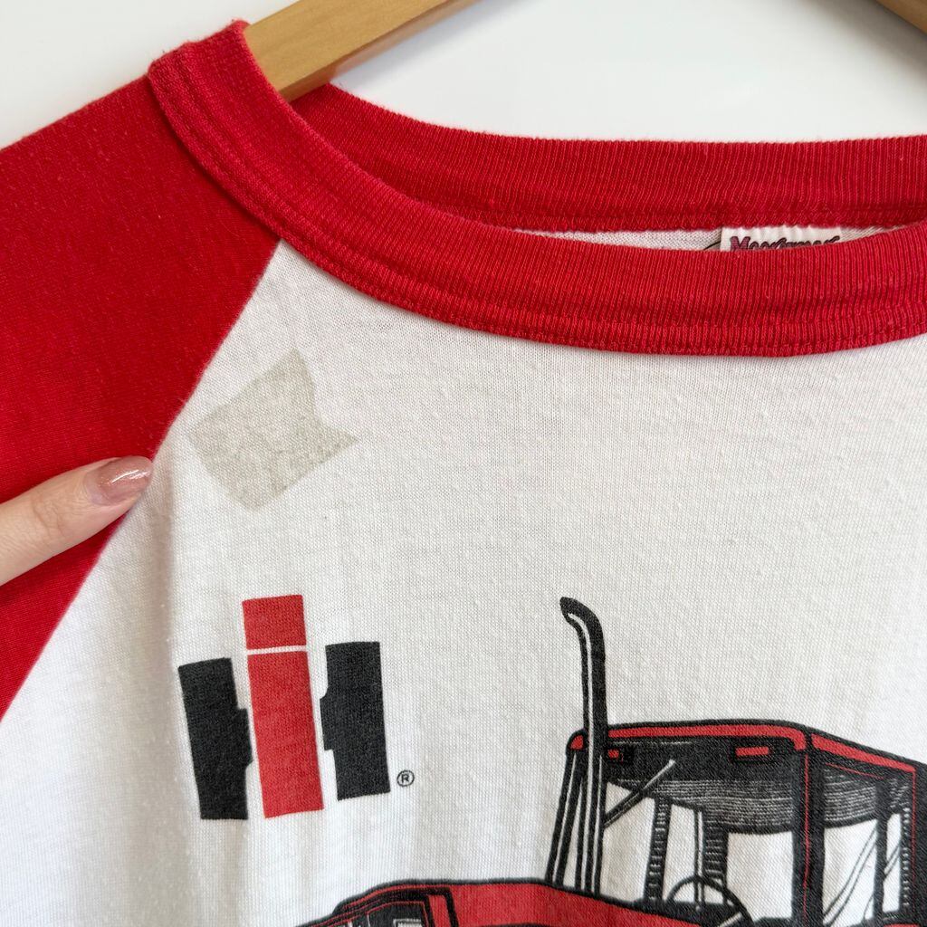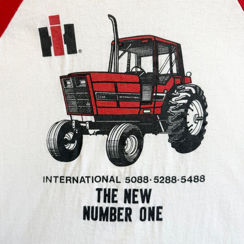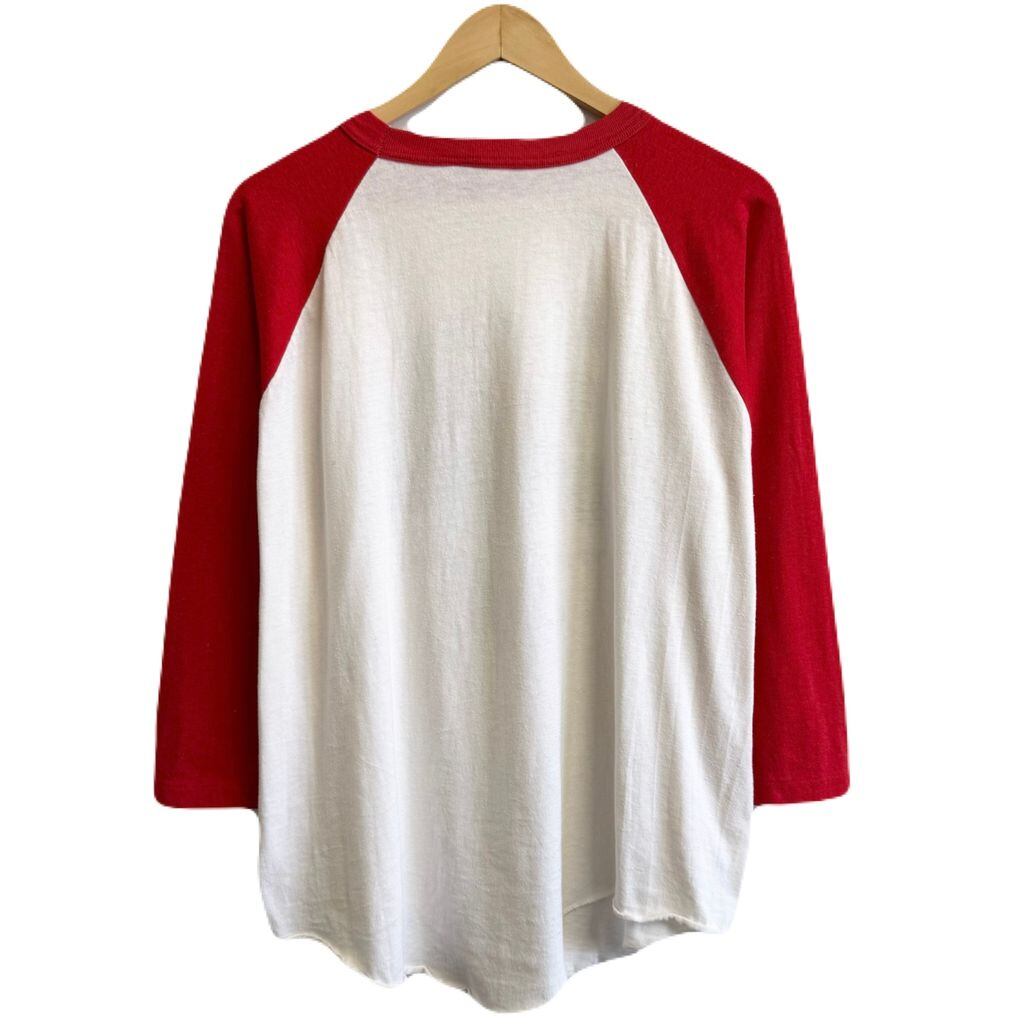 USA製 Moorewear ボロ ラグランTシャツ フロントプリント トラクター シングルステッチ 白×赤 No.H639