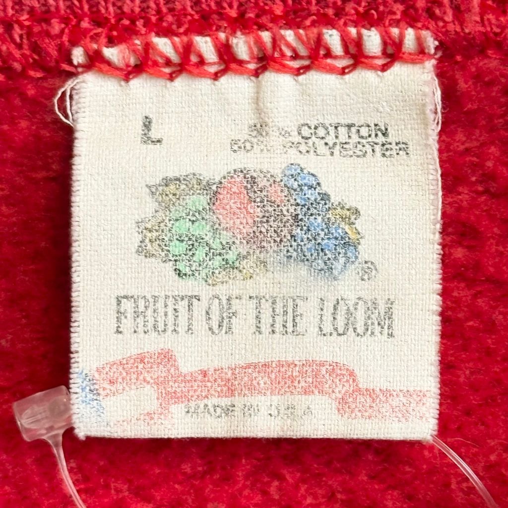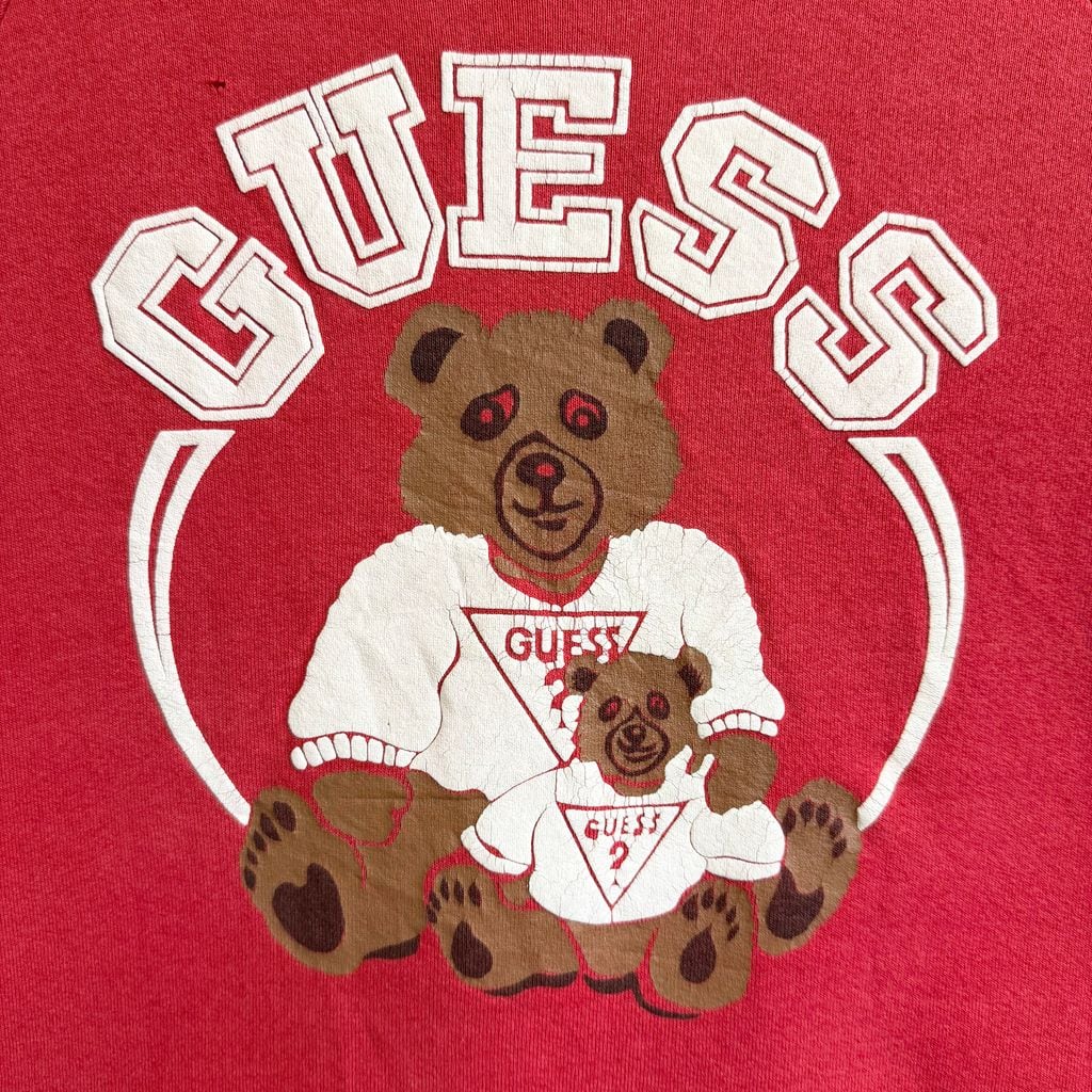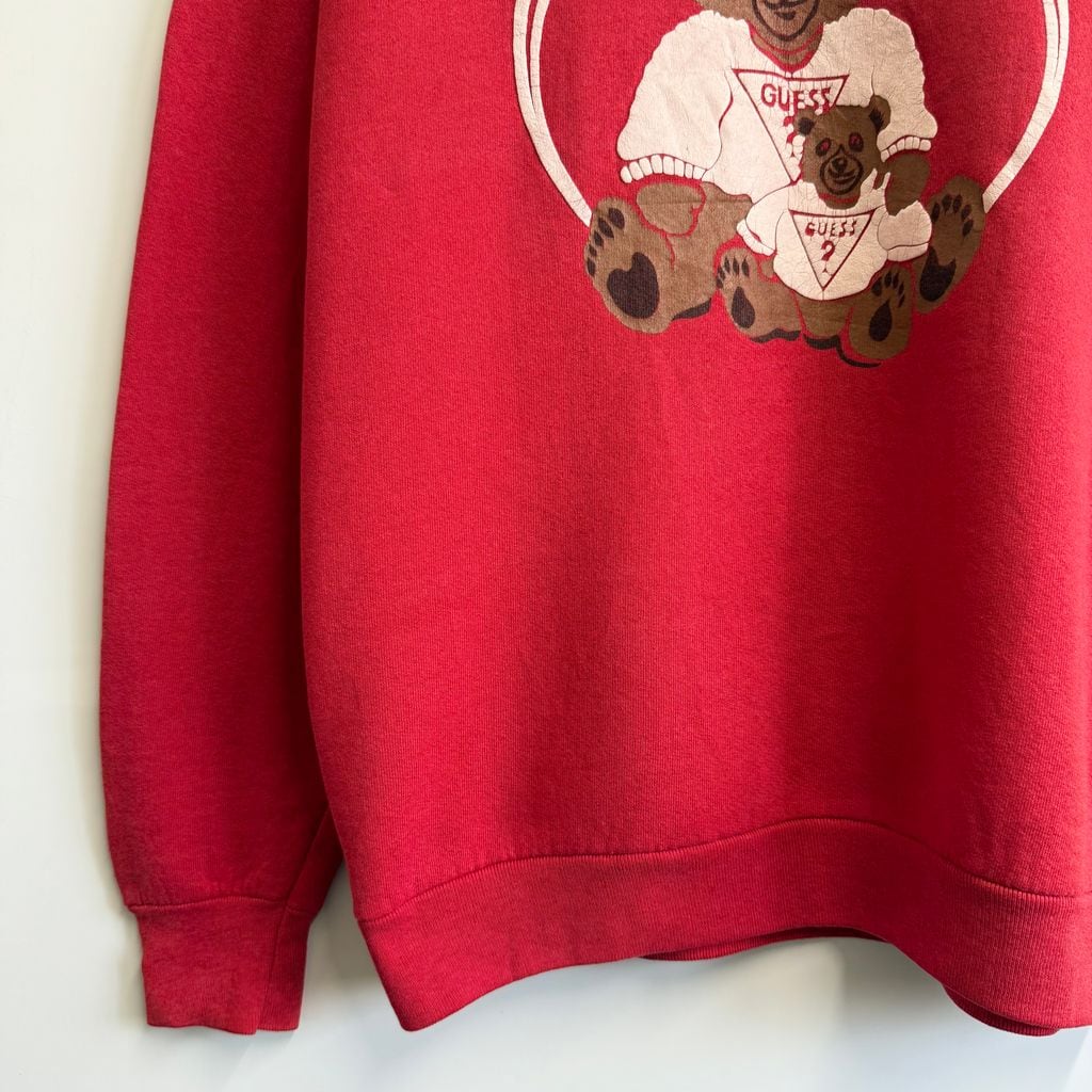 80's〜90's USA製 FRUIT OF THE LOOM フルーツオブザルーム GUESS ゲス パロディ クマ ゲスくま ラグランスウェット トレーナー 裏起毛 赤 レッド Lサイズ No.H641