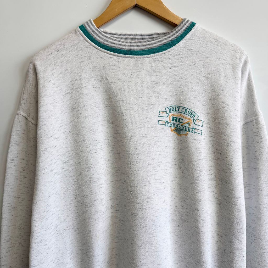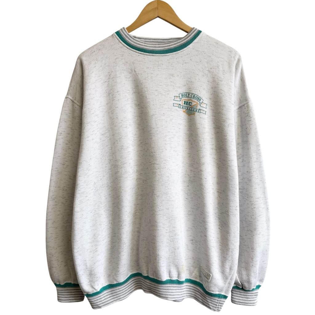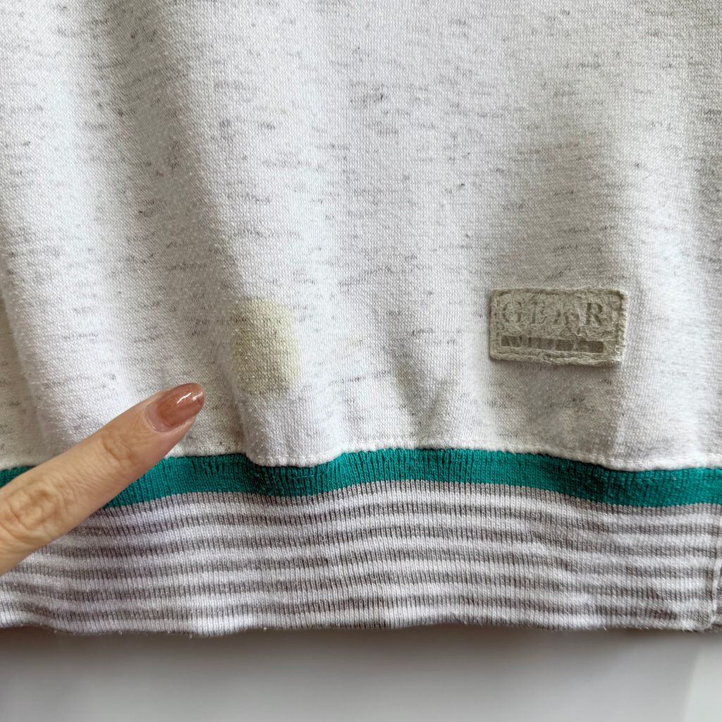 GEAR リブライン カレッジロゴ トレーナー スウェット 白×ライトグレー×エメラルドグリーン XLサイズ No.H644