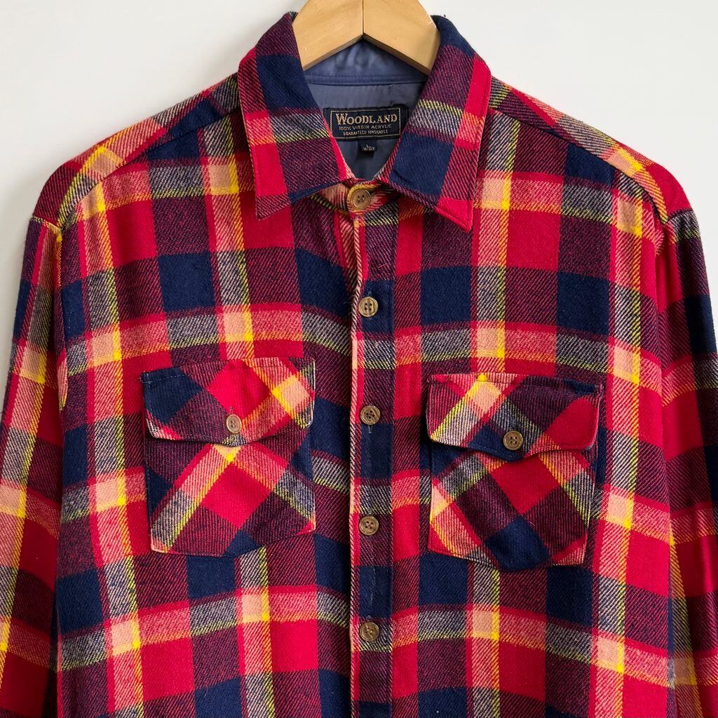 WOODLAND チェック柄 ポケット付き 厚手長袖シャツ 赤×紺×黄色×多色 Lサイズ No.H651