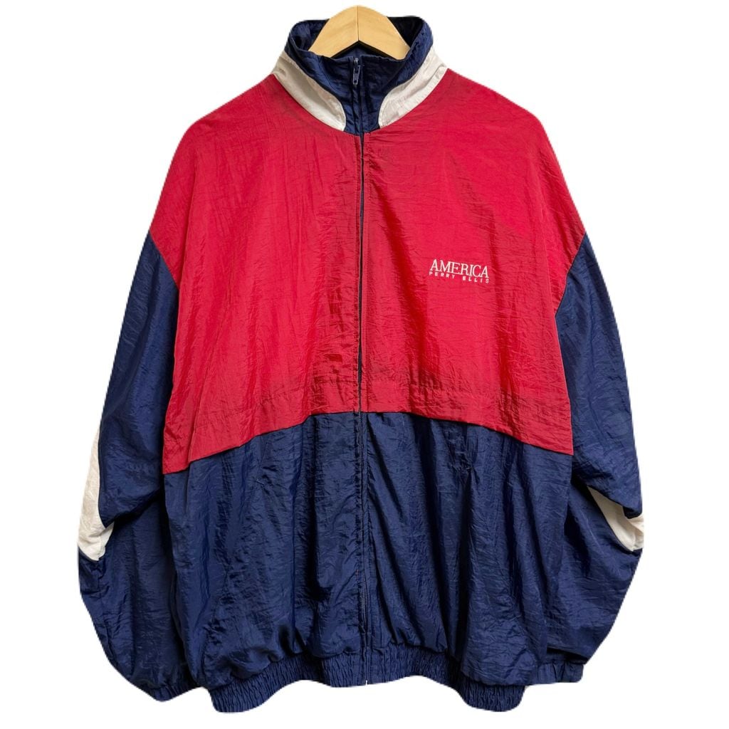 PERRY ELLIS AMERICA ナイロンジャケット ウィンドブレーカー フルジップ ポケット付き トリコロールカラー 赤×青×白 XLサイズ No.H661