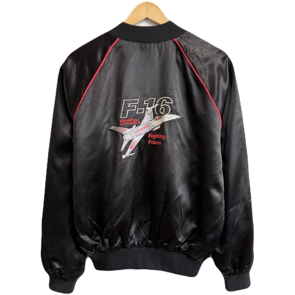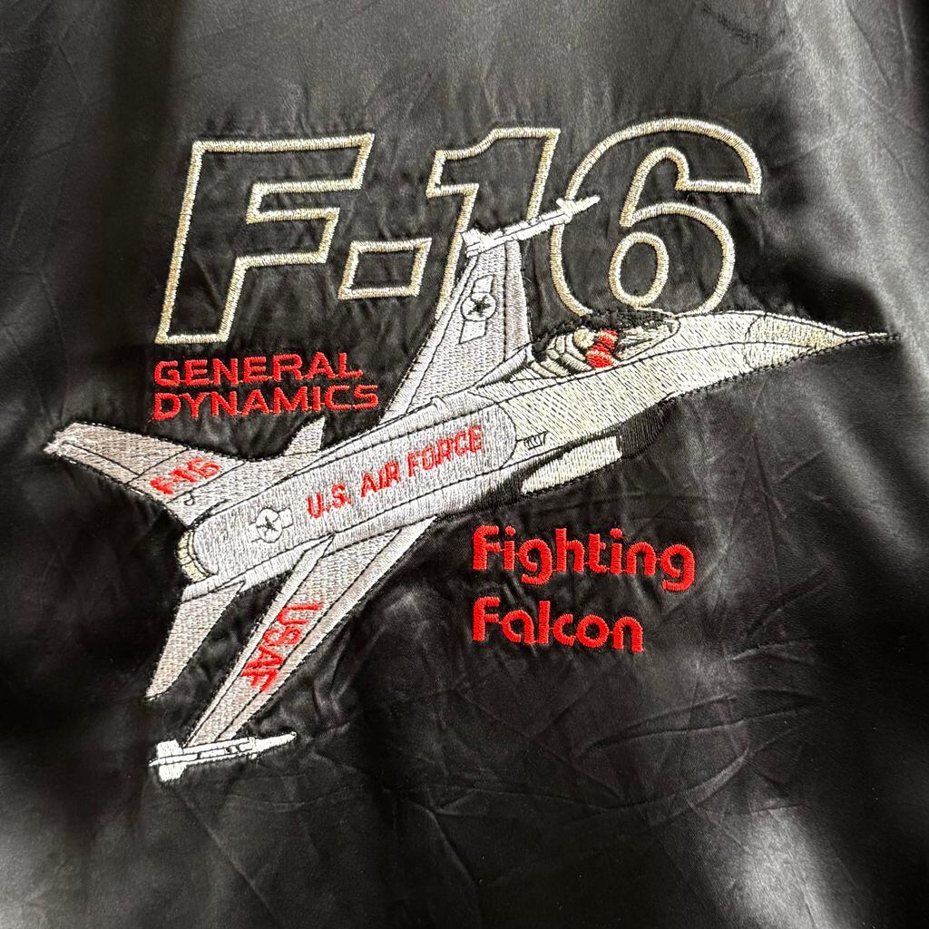 USA製 HIGH FIVE ボンバージャケット 戦闘機 F-16 ファイティングファルコン 刺繍 フルジップ ポケット付き 黒 Lサイズ No.H671