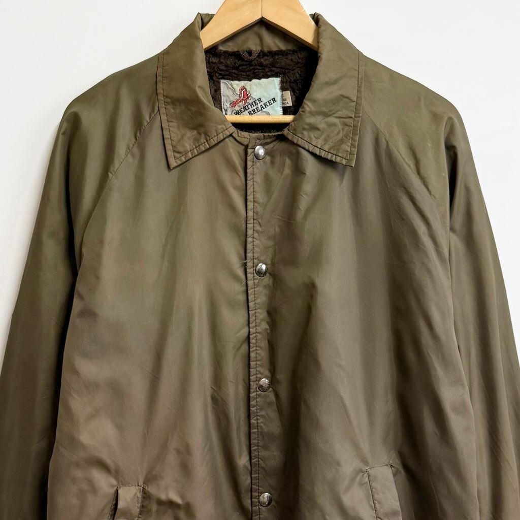USA製 WEATHER BREAKER 裏ボア コーチジャケット ボアジャケット スナップボタン ポケット付き カーキ Lサイズ No.H675