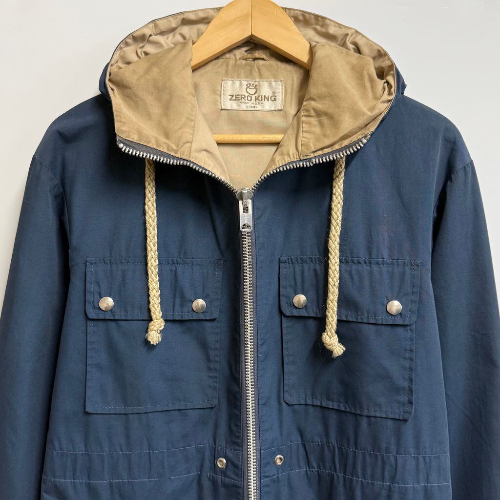 60's USA製 ZERO KING タロンジップ マウンテンパーカー フーデッドジャケット フルジップ ポケット付き 紺 ネイビー サイズ38 No.H678