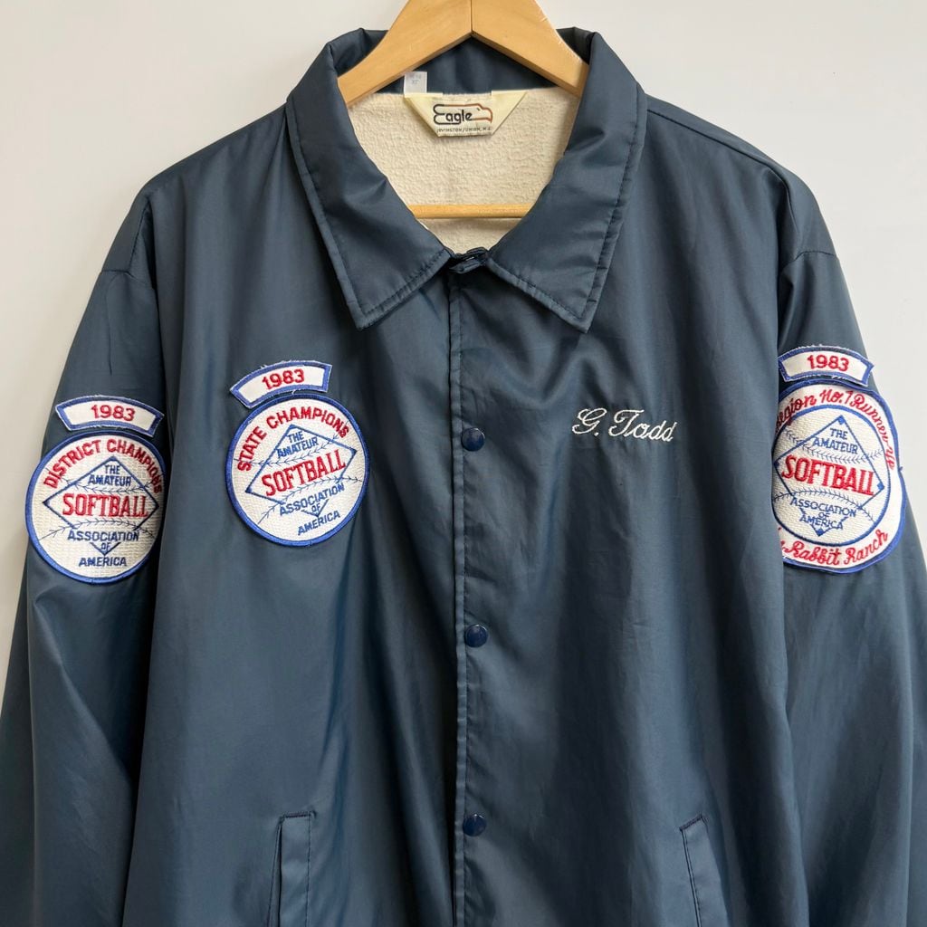 Eagle コーチジャケット SOFTBALL ソフトボール ワッペン バックプリント うさぎ ラビット スナップボタン ネイビー 青 ブルー系 XLサイズ No.H732