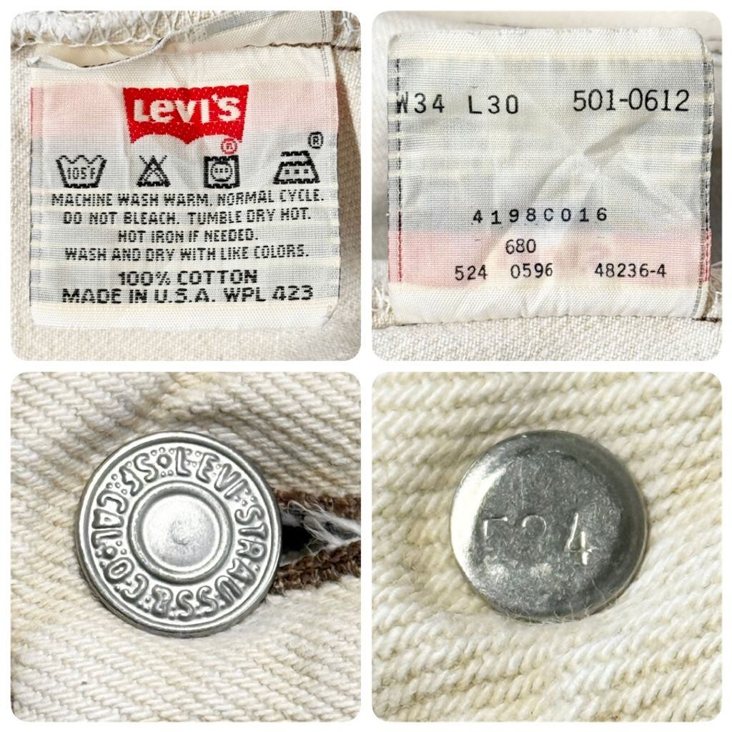 USA製 Levi's リーバイス ボタンフライ デニムパンツ コットンパンツ アイボリー W34×30 No.H734