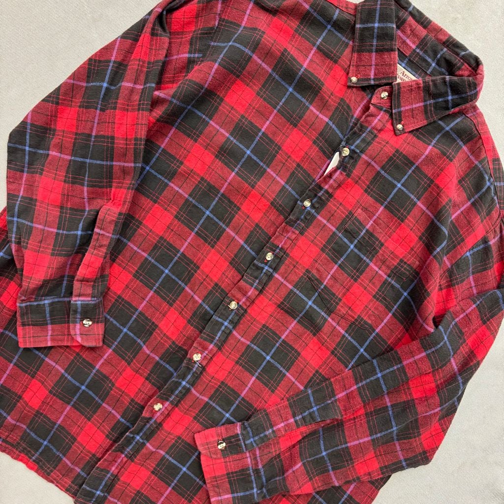 Arrow sportswear ボタンダウン ポケット付き チェック柄 ネルシャツ 長袖シャツ 赤×黒×青 1xBIG LONG No.E810