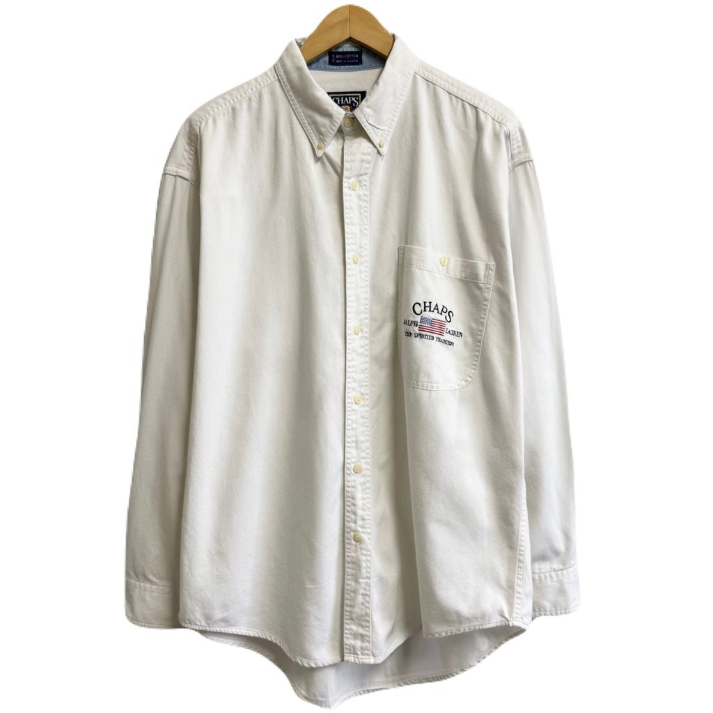 CHAPS チャップス RALPH LAUREN ラルフローレン ボタンダウンシャツ コットンシャツ ポケット付き 長袖シャツ ロゴ刺繍 白 Lサイズ No.H752