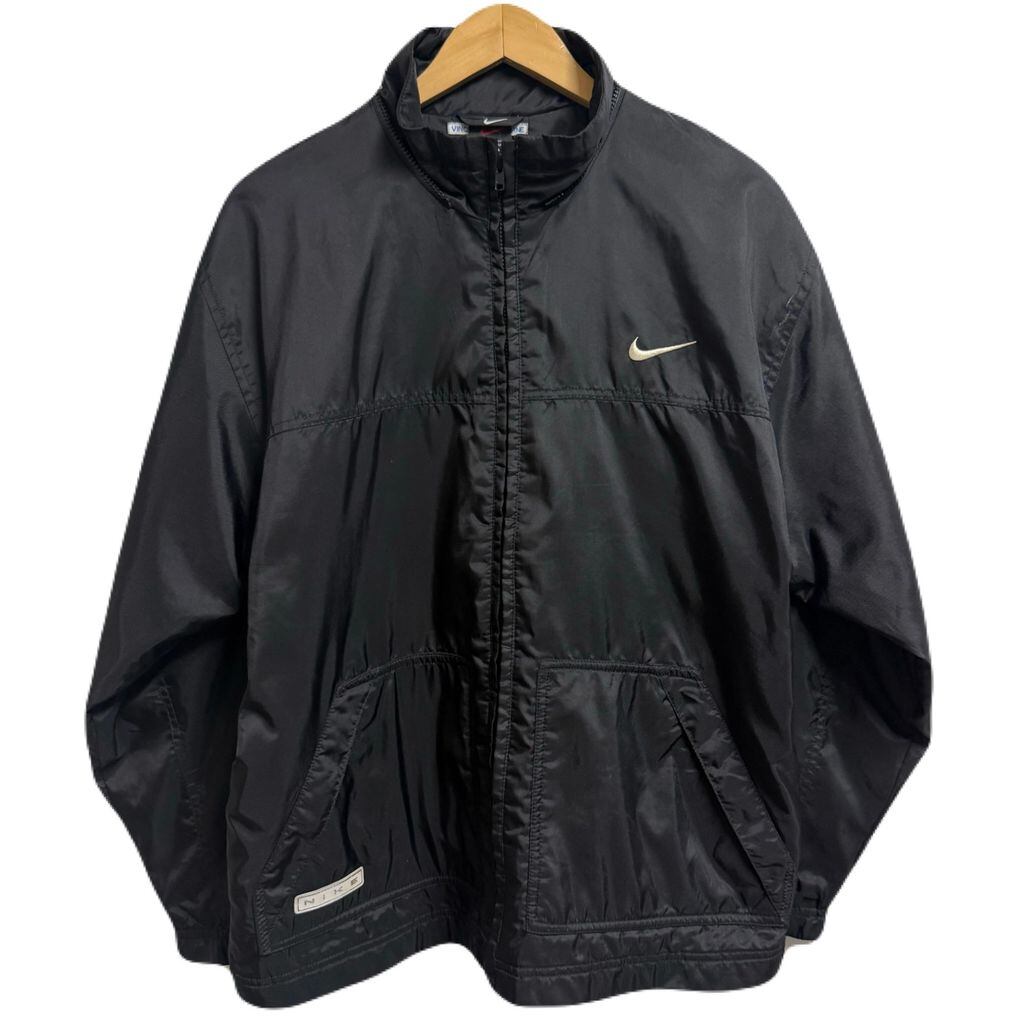 NIKE ナイキ ナイロンジャケット ウィンドブレーカー フルジップ ポケット付き ワンポイントロゴ 刺繍 黒 ブラック XLサイズ No.H761