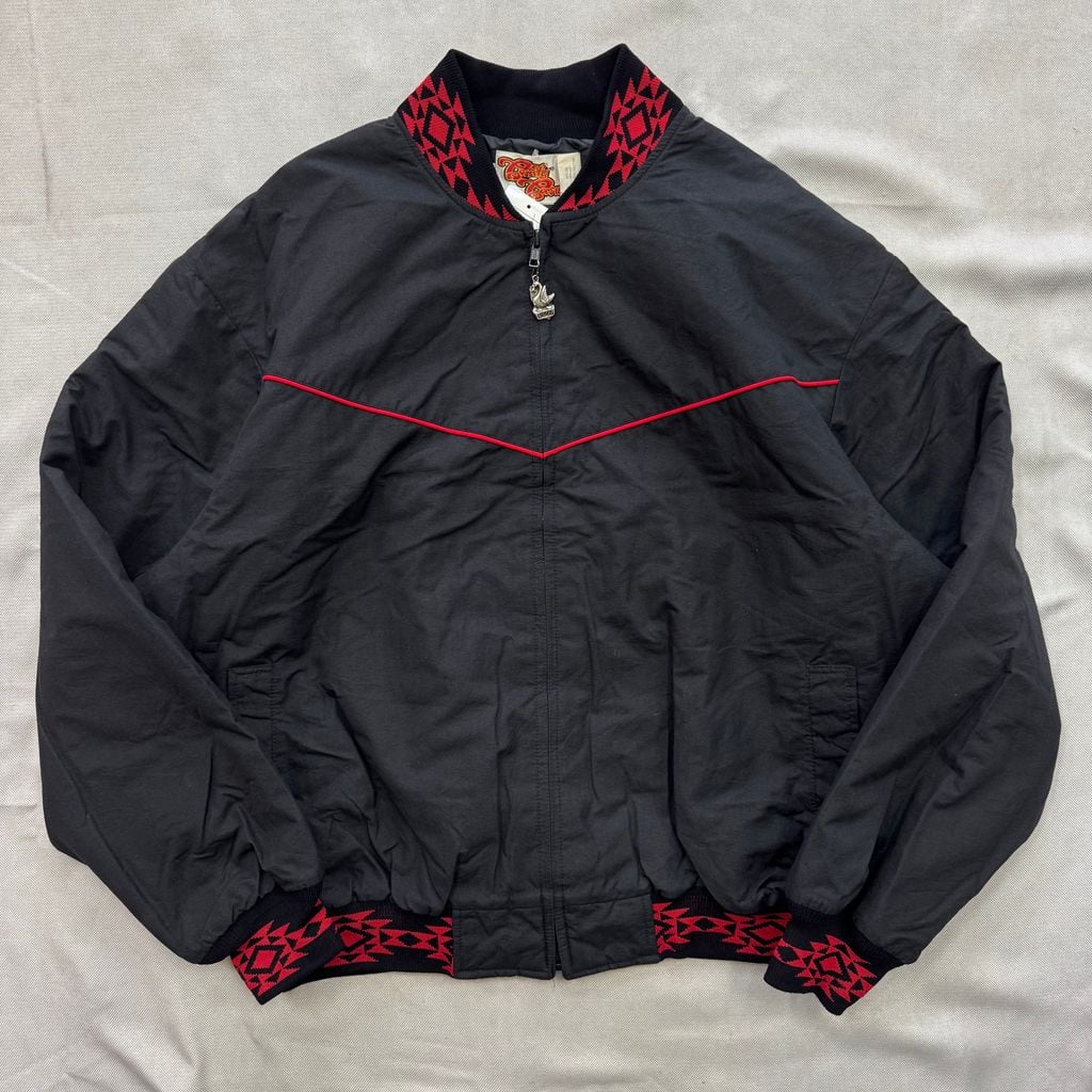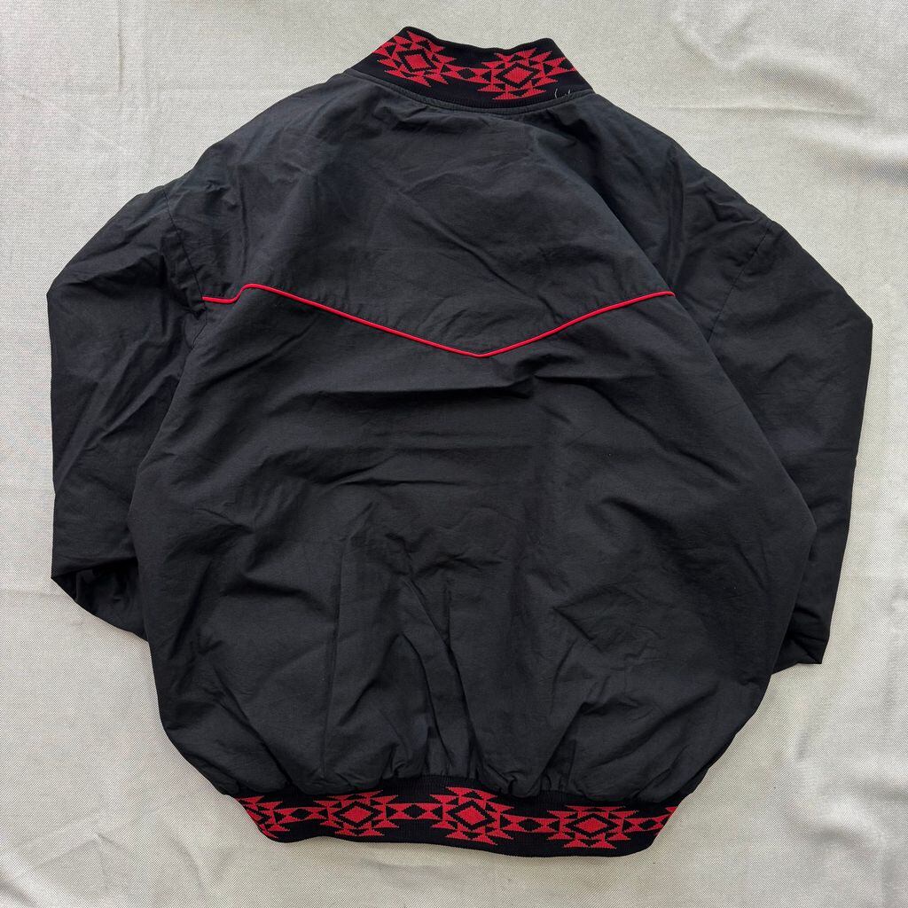 USA製 COMFY CASUALS ネイティブ柄 ポケット付き ブルゾン ジャケット 黒×赤 XLサイズ No.E811