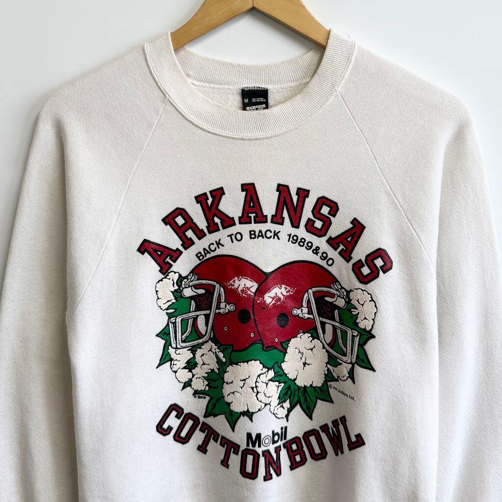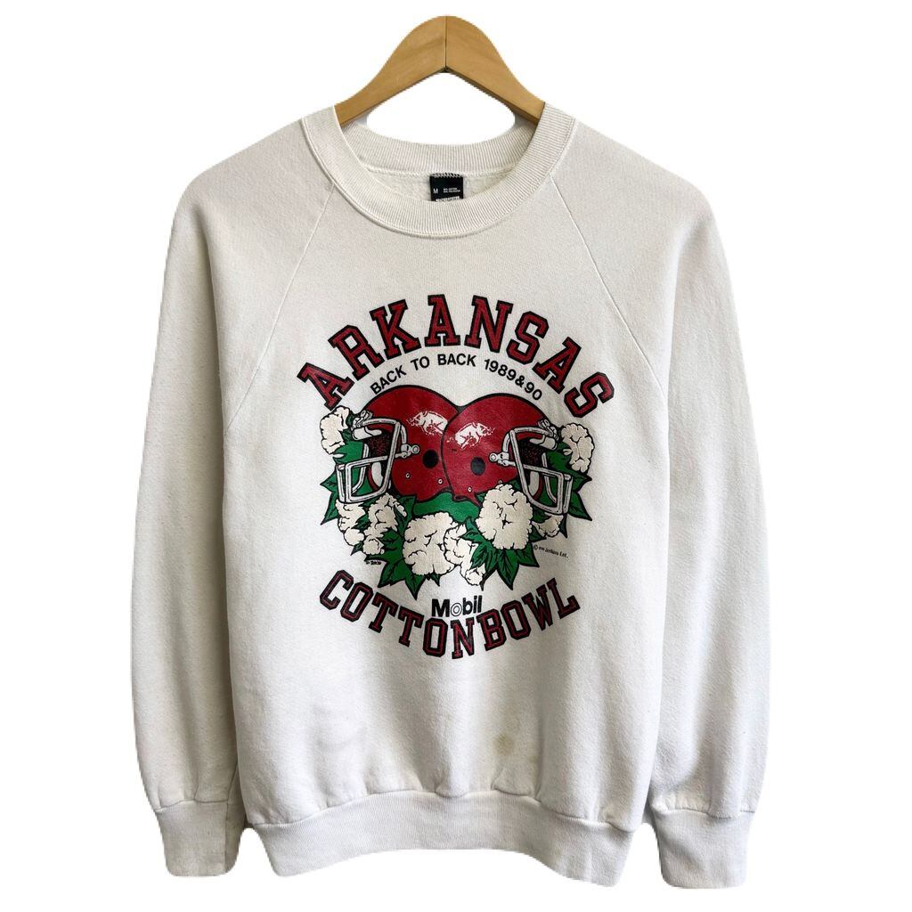80's USA製 SCREEN STARS スクリーンスターズ アーカンソー レイザーバックス アメフト ラグランスウェット トレーナー 裏起毛 白 Mサイズ No.H770