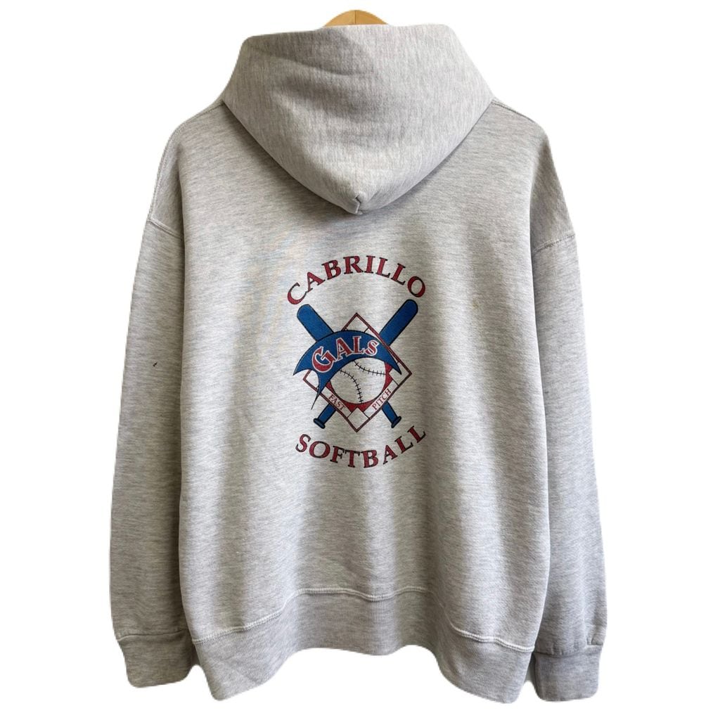 RUSSELL ATHLETIC ラッセル ボロ 両面プリント SOFTBALL ソフトボール フーディー パーカー ポケット付き ライトグレー Lサイズ No.H777