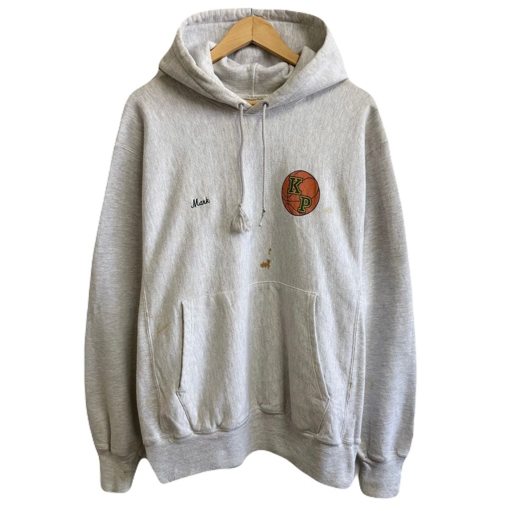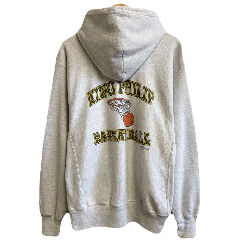 〜00's Champion チャンピオン 両面プリント バスケットゴール basketball バスケットボール フーディー パーカー ポケット付き ライトグレー Mサイズ No.H778