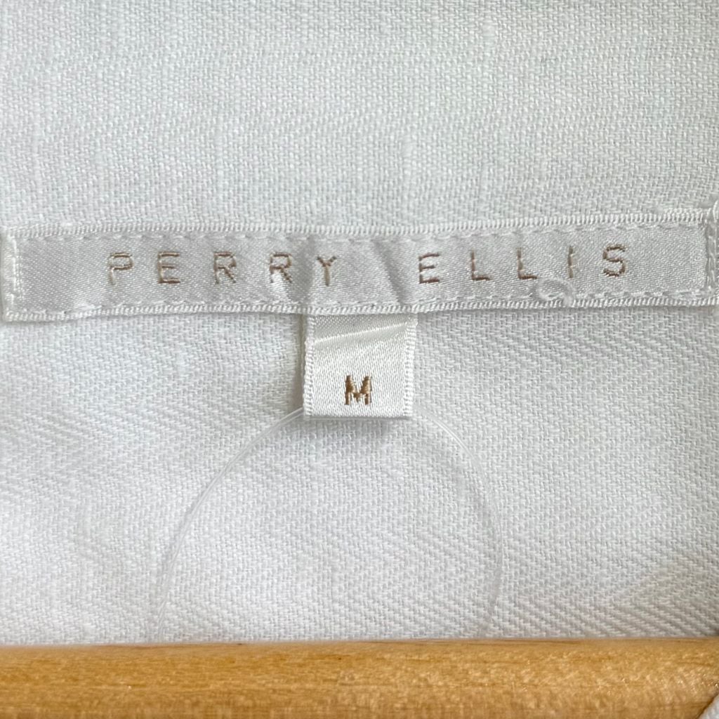 PERRY ELLIS バンドカラー リネン コットン 長袖シャツ 無地 ポケット付き 白 Mサイズ No.H779