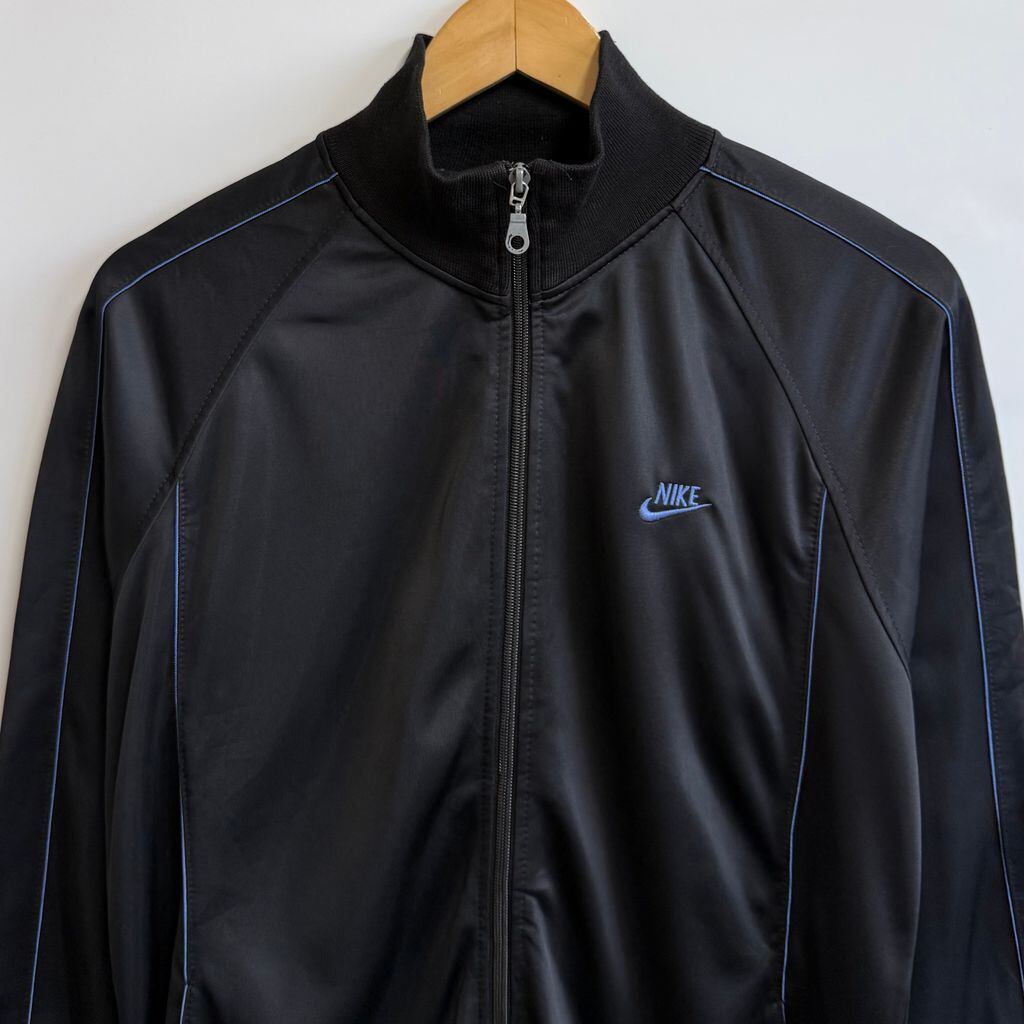NIKE ナイキ パイピング トラックジャケット ジャージ ワンポイントロゴ 刺繍 フルジップ ポケット付き 黒 ブラック No.H786