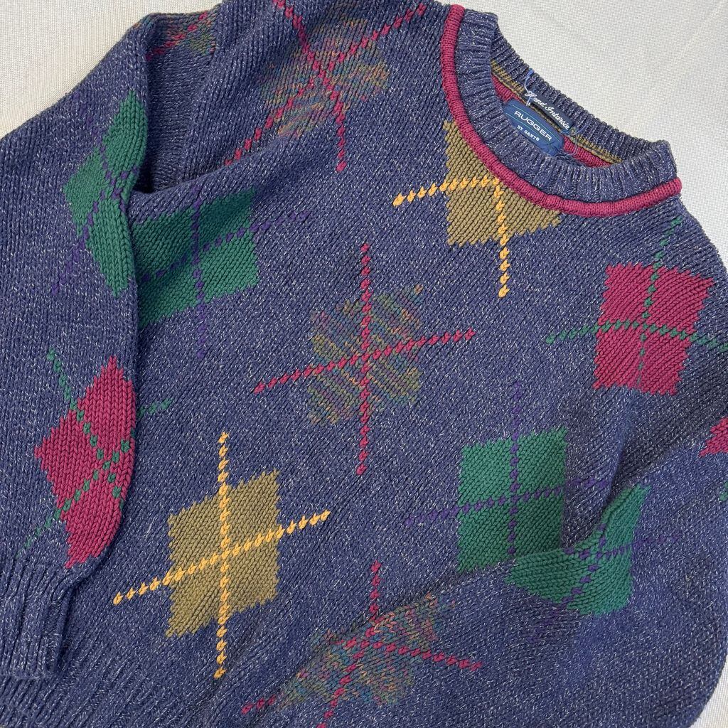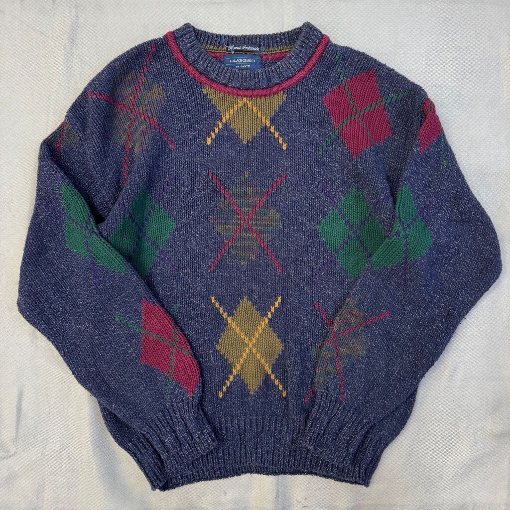 Rugger by Gant Hand Intarsia Knit Argyle Crewneck アーガイル柄 ニット 紫×緑×黄 Mサイズ No.E814