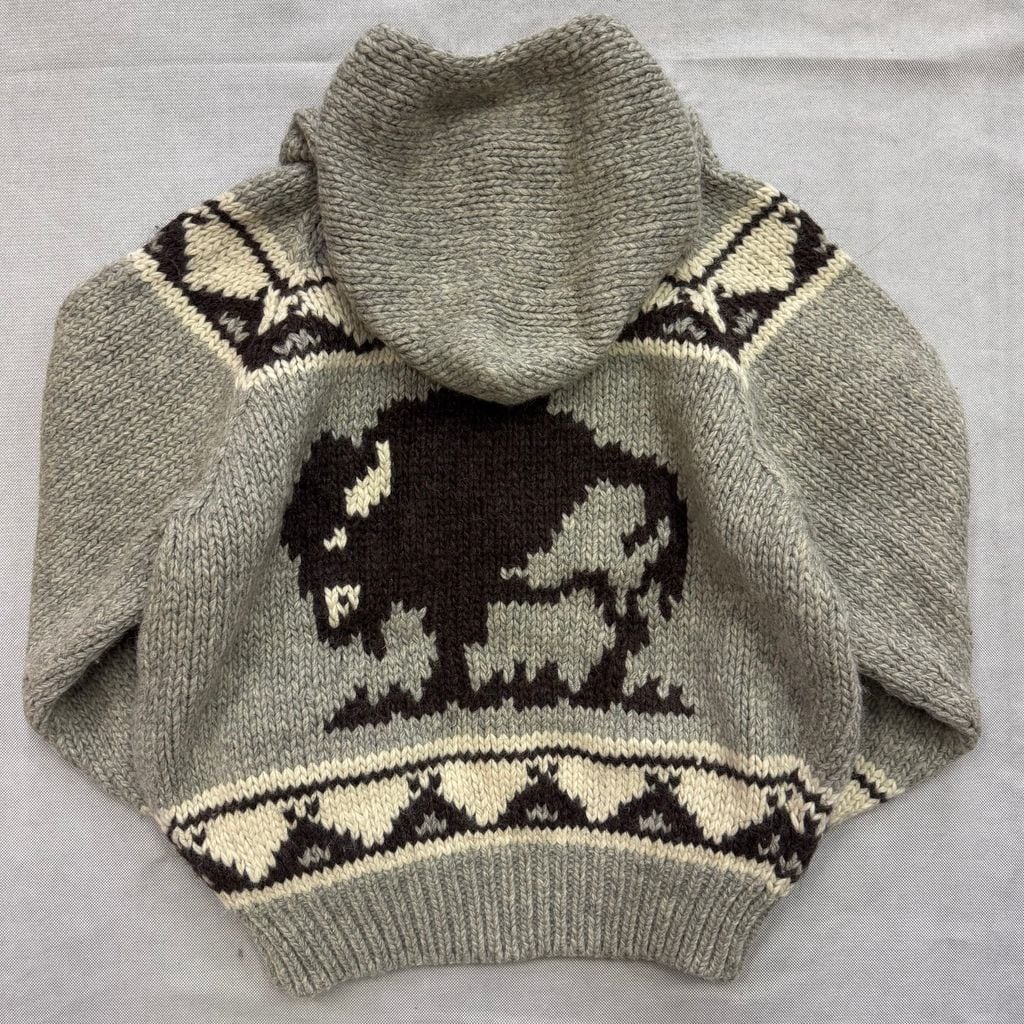 UNIVERSITY SHOP INTERNATIONAL CAMPUS フード付き フルジップ カウチンニット ブラウン系 Mサイズ No.E817
