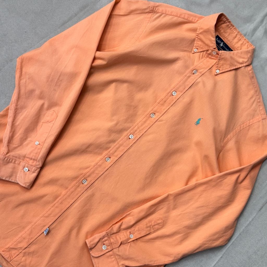 Ralph Lauren ラルフローレン ボタンダウン 長袖シャツ サーモンオレンジ Lサイズ No.E822