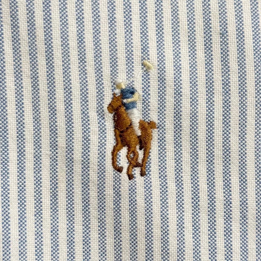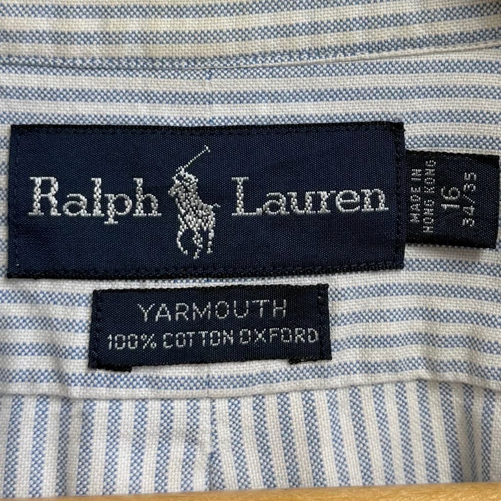 Ralph Lauren ラルフローレン YARMOUTH ボタンダウンシャツ コットンシャツ ストライプ 長袖シャツ ワンポイントロゴ 刺繍 白×青 No.H796