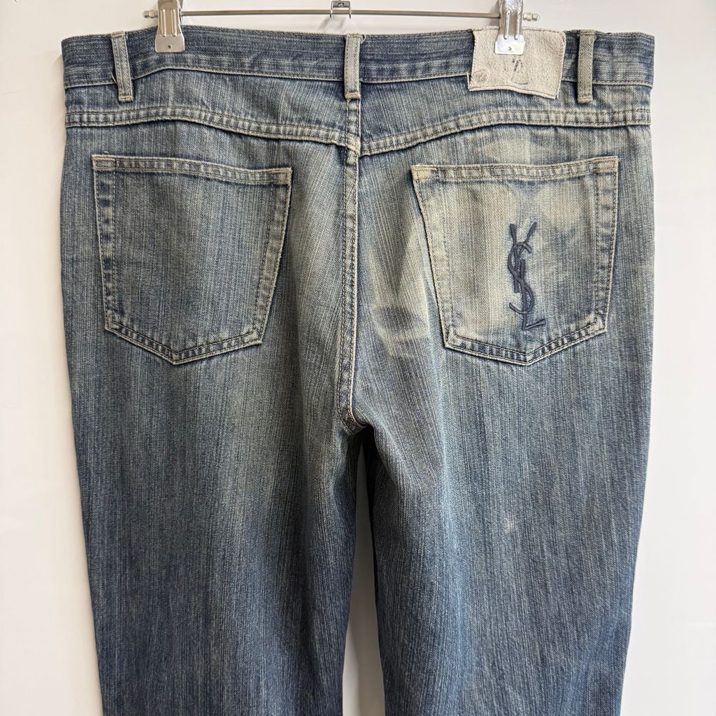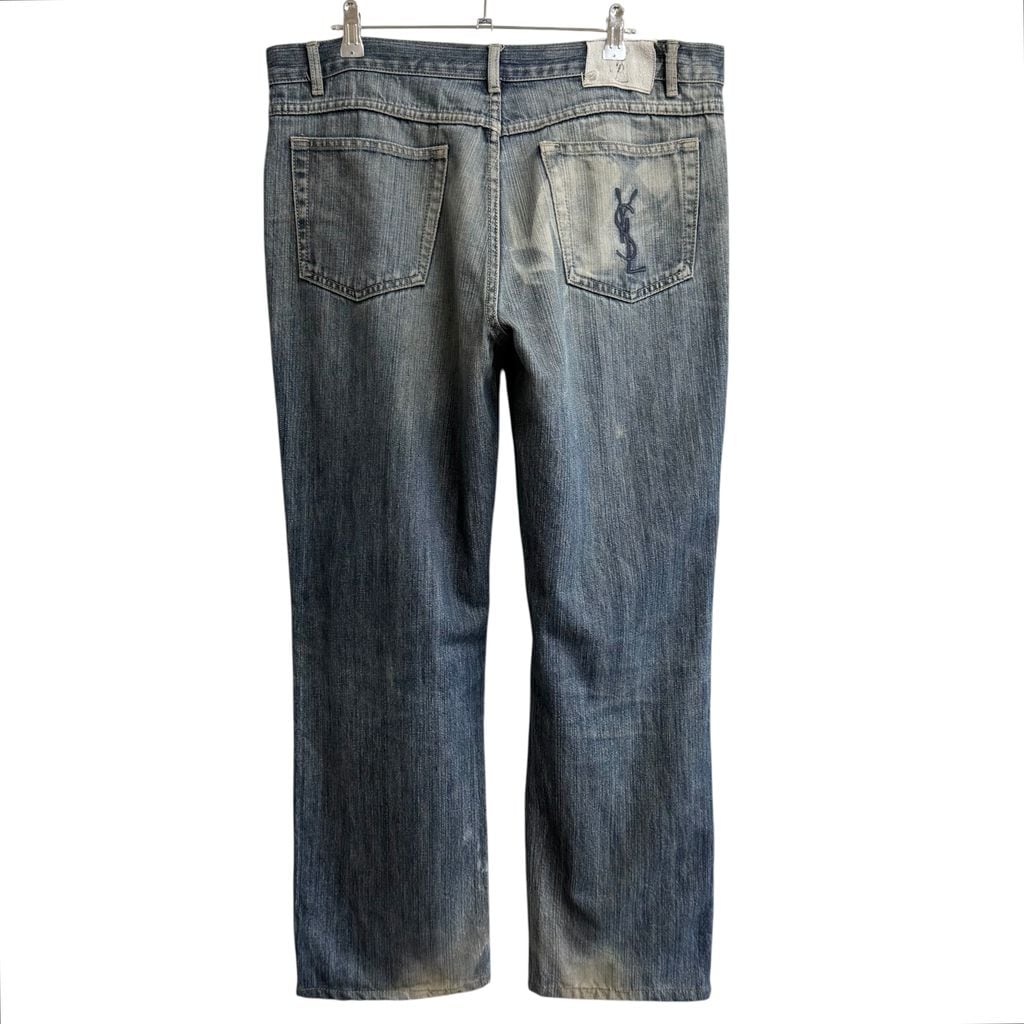 Yves Saint Laurent イヴサンローラン ボタンフライ デニムパンツ コットンパンツ ロゴ刺繍 青 ブルー系 W36 No.H802