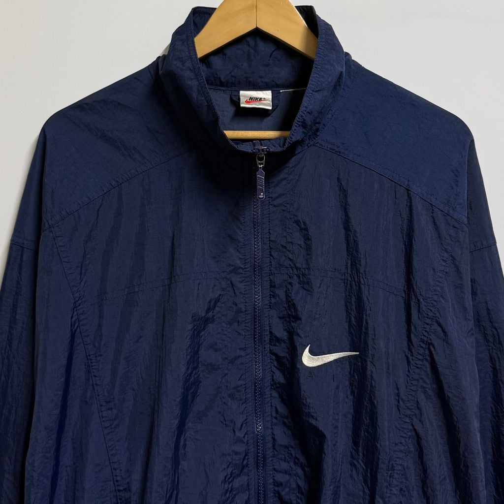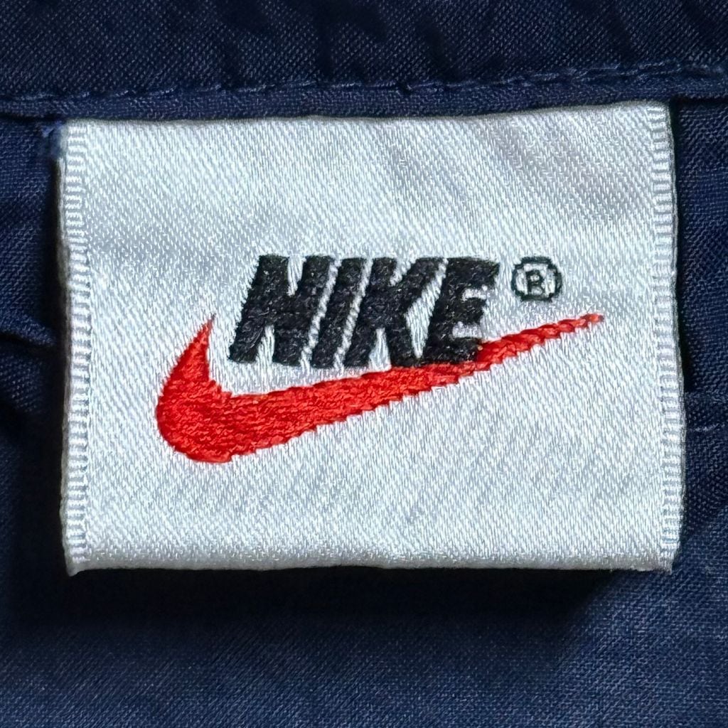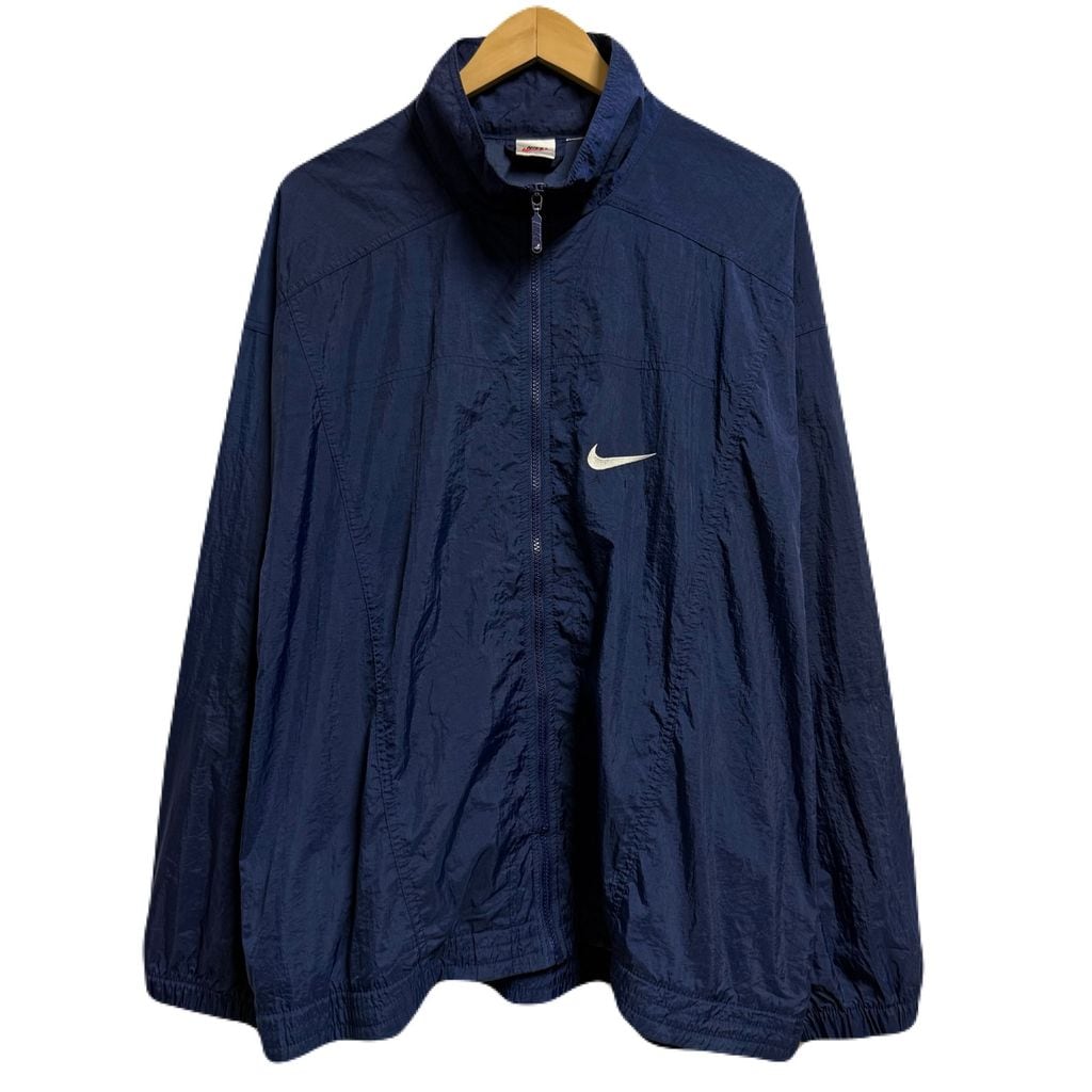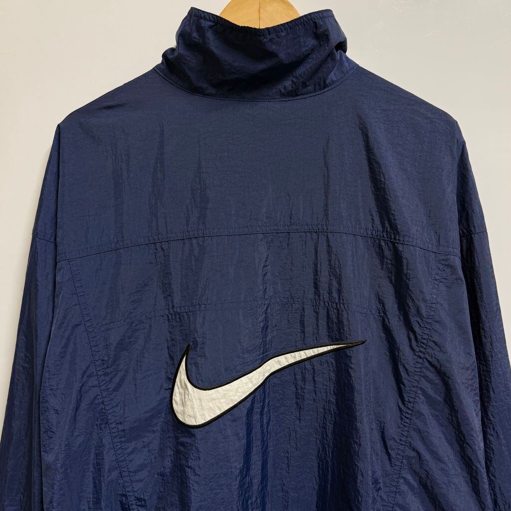 NIKE ナイキ 銀タグ ビッグスウッシュ ナイロンジャケット ウィンドブレーカー フルジップ ポケット付き 紺 ネイビー No.H815