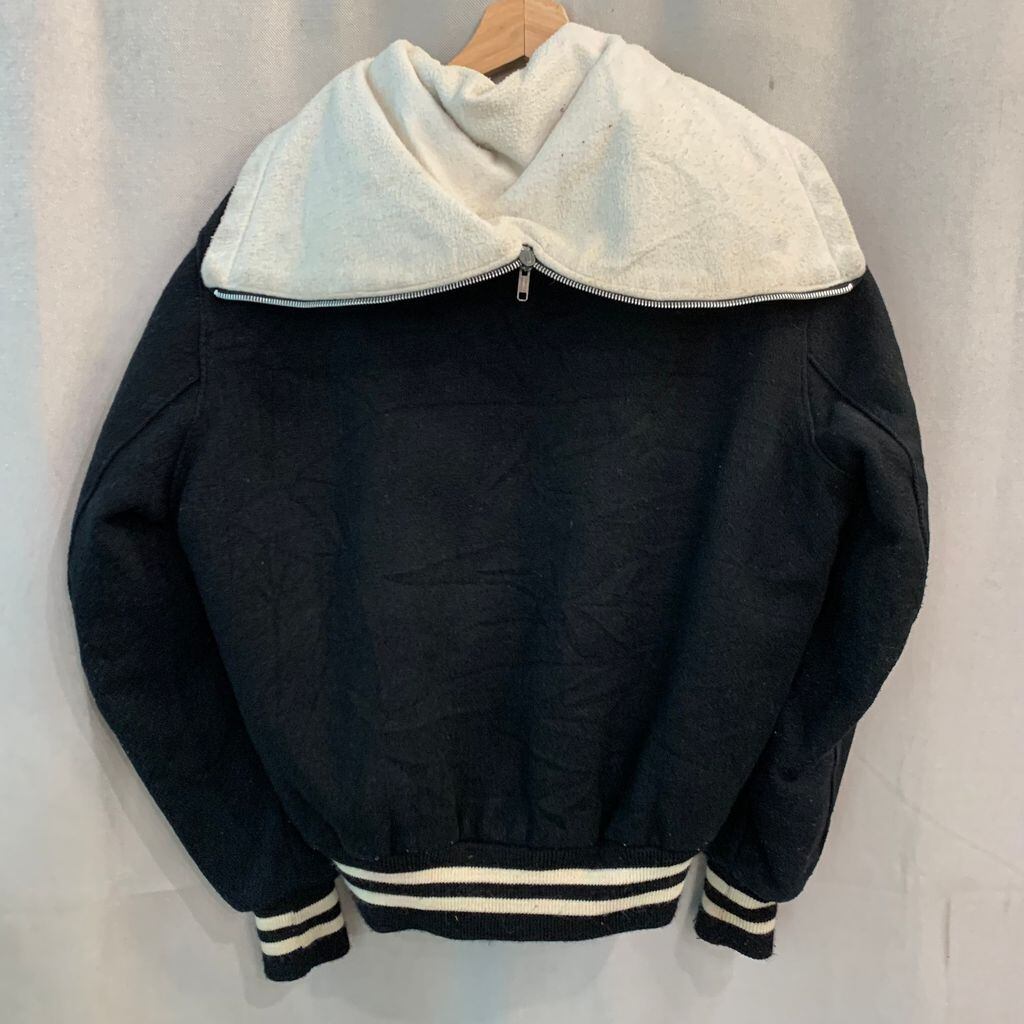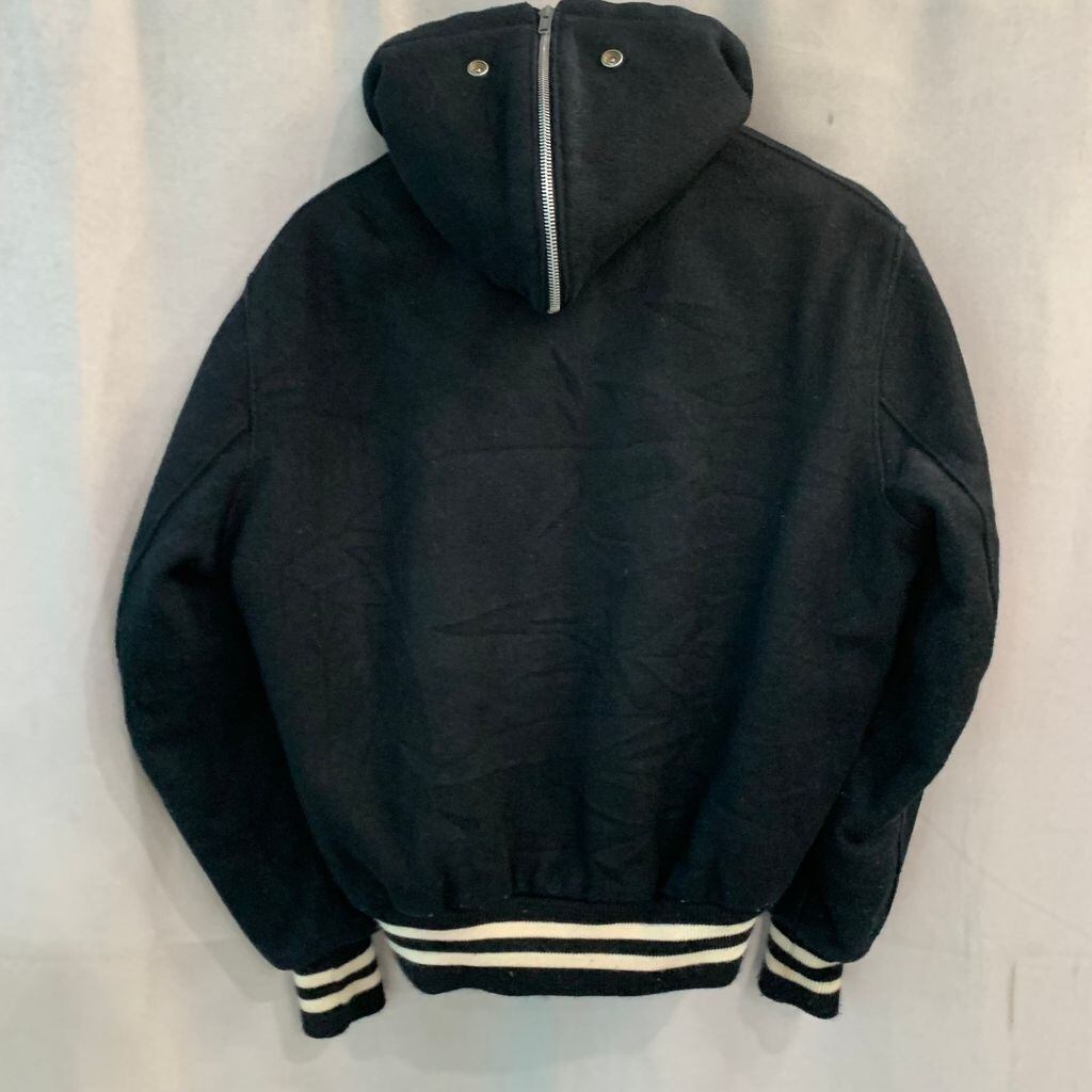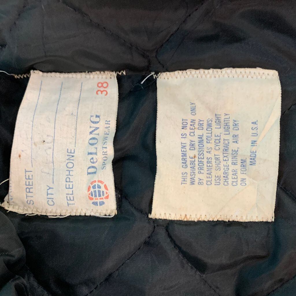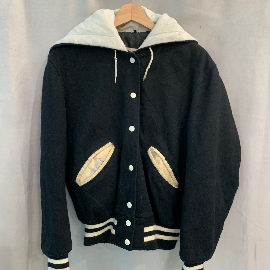 80s~ vintage デロング De LONG スタジャン フード付き アワードジャケット 黒 白 Black White 38 サイズ No.I407