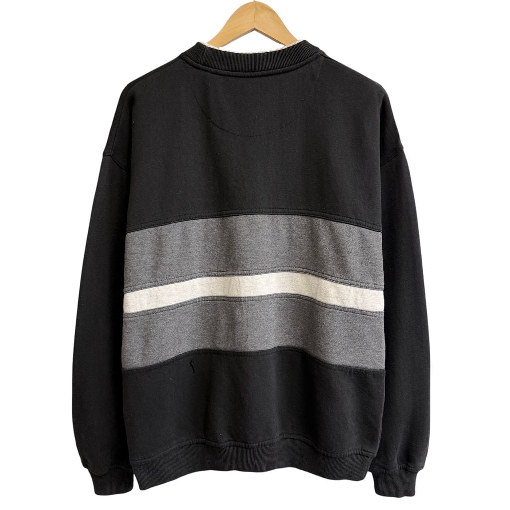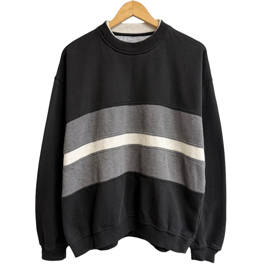 TOWNCRAFT タウンクラフト ボロ クルーネック ボーダー トレーナー スウェット 裏起毛 黒×グレー×白 L/Gサイズ No.H822