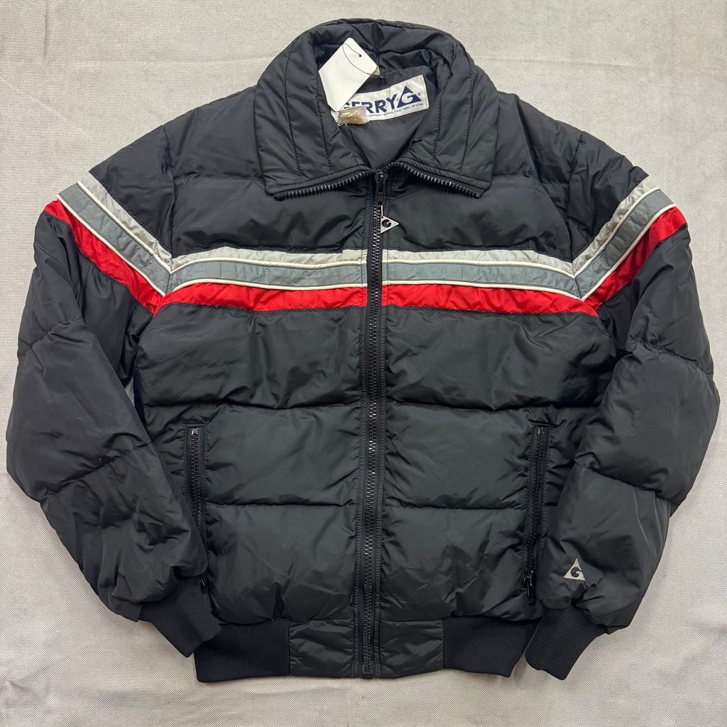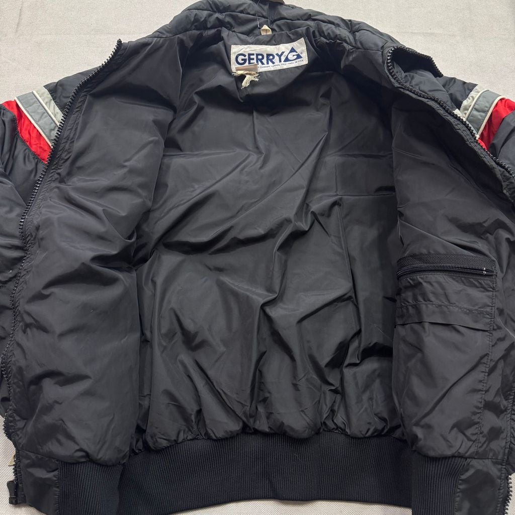 80s USA製 GERRY ジェリー ダウンジャケット ポケット付き 黒×赤×白×灰 No.E823