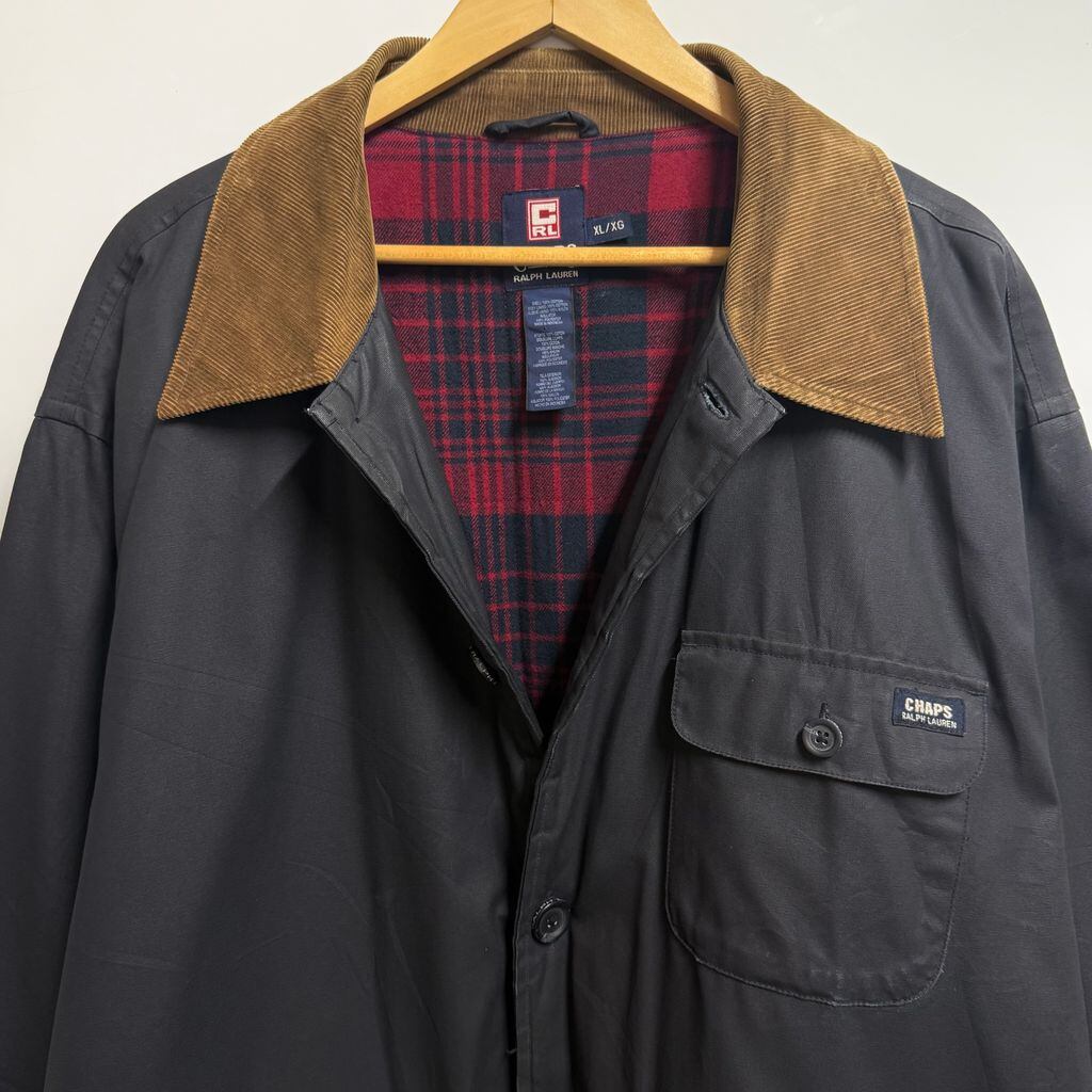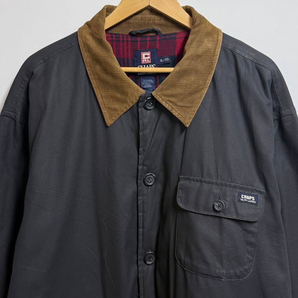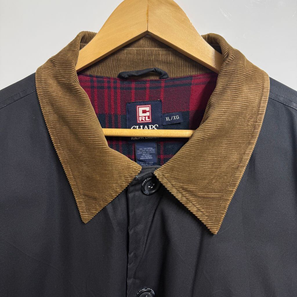 CHAPS チャップス RALPH LAUREN ラルフローレン コットンジャケット 襟コーデュロイ 裏地チェック柄 フロントボタン 黒×茶 XLサイズ No.H845