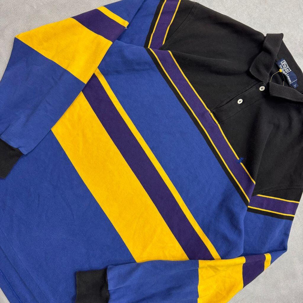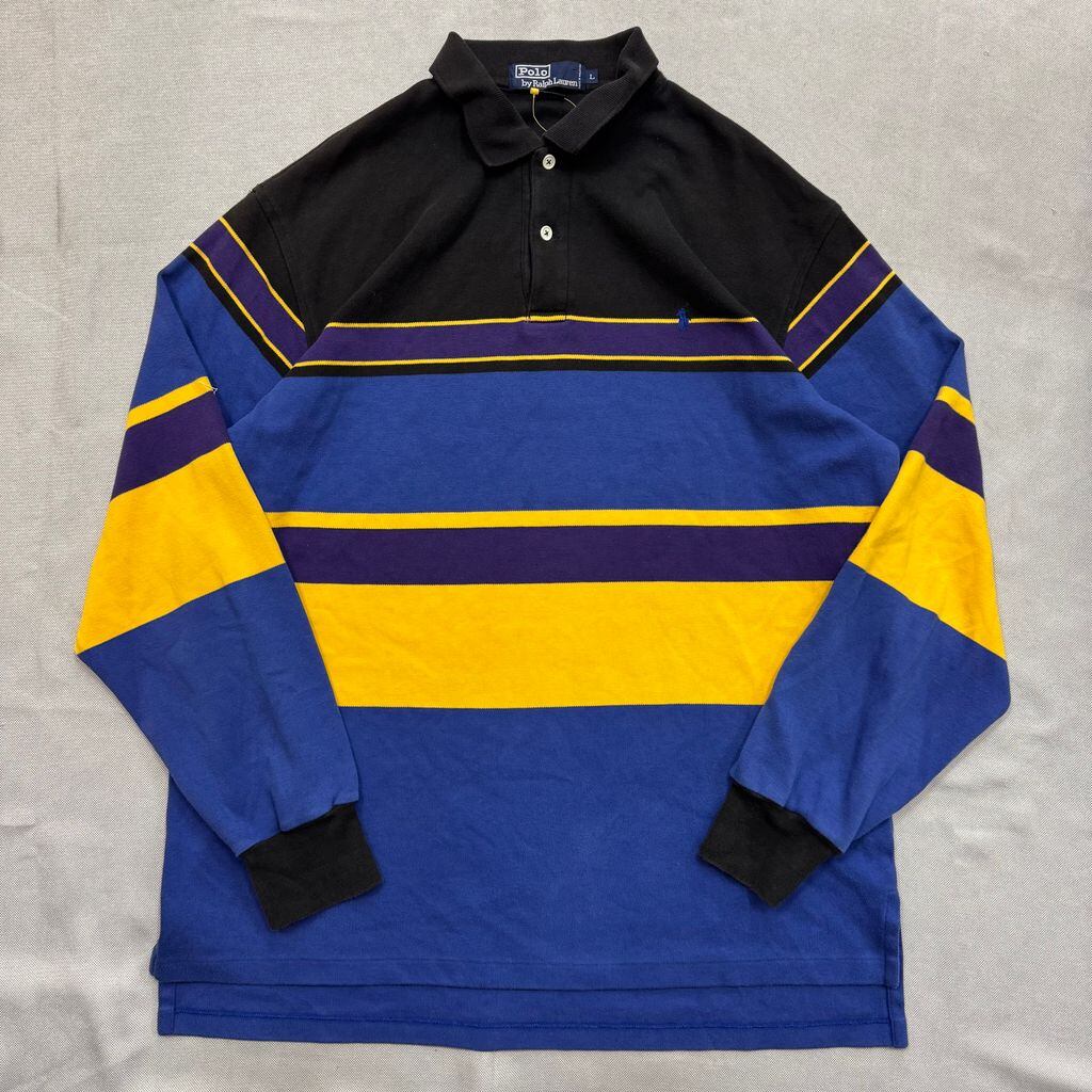 Polo by Ralph Lauren ポロ ラルフローレン ポロシャツ 長袖 黒×紫×青×黄 Lサイズ No.E830
