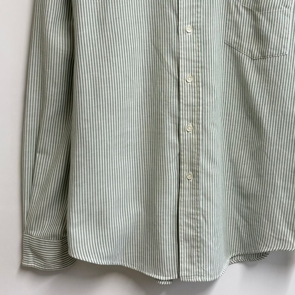 LAND'S END ランズエンド ボタンダウンシャツ ストライプ ポケット付き 長袖シャツ 白×緑 No.H852