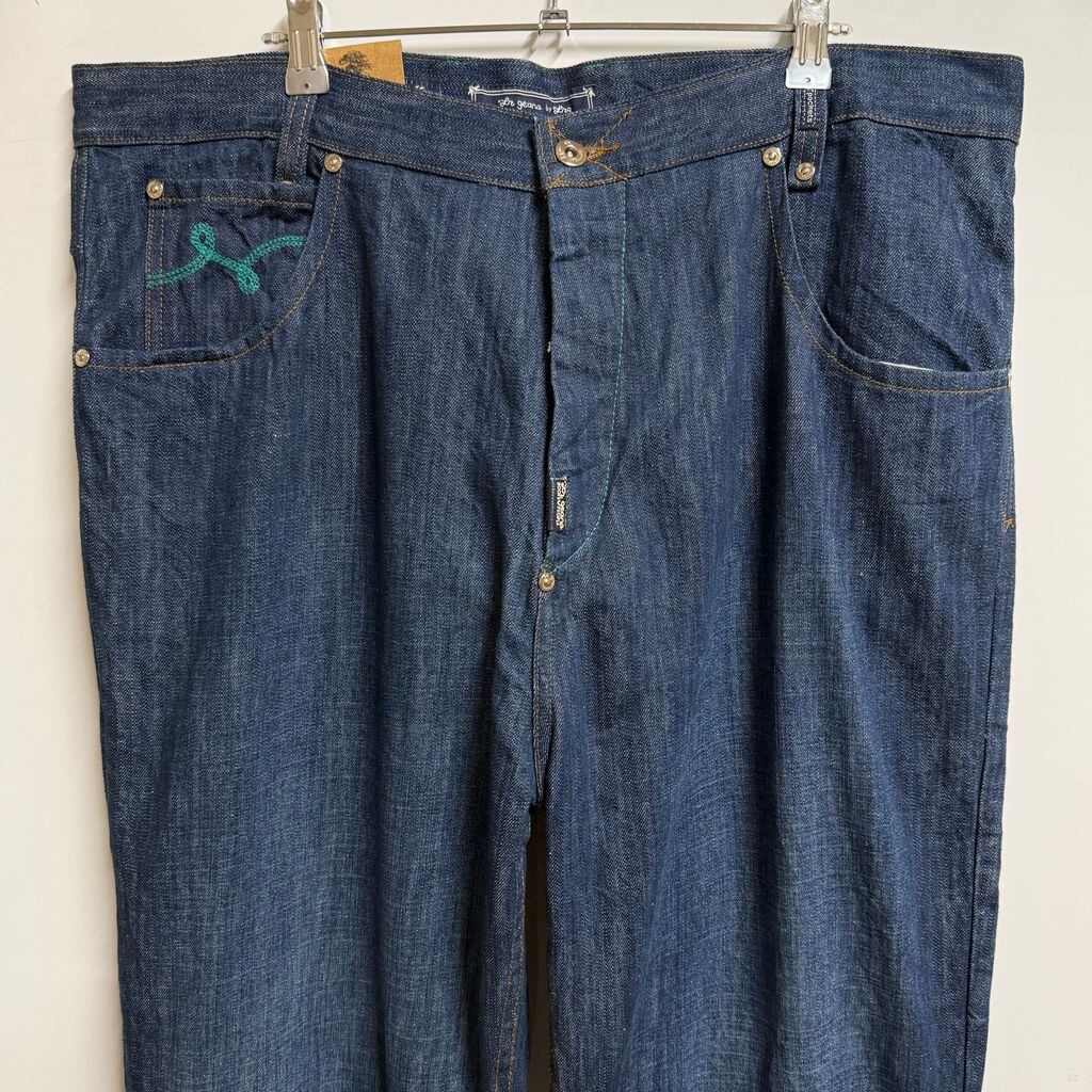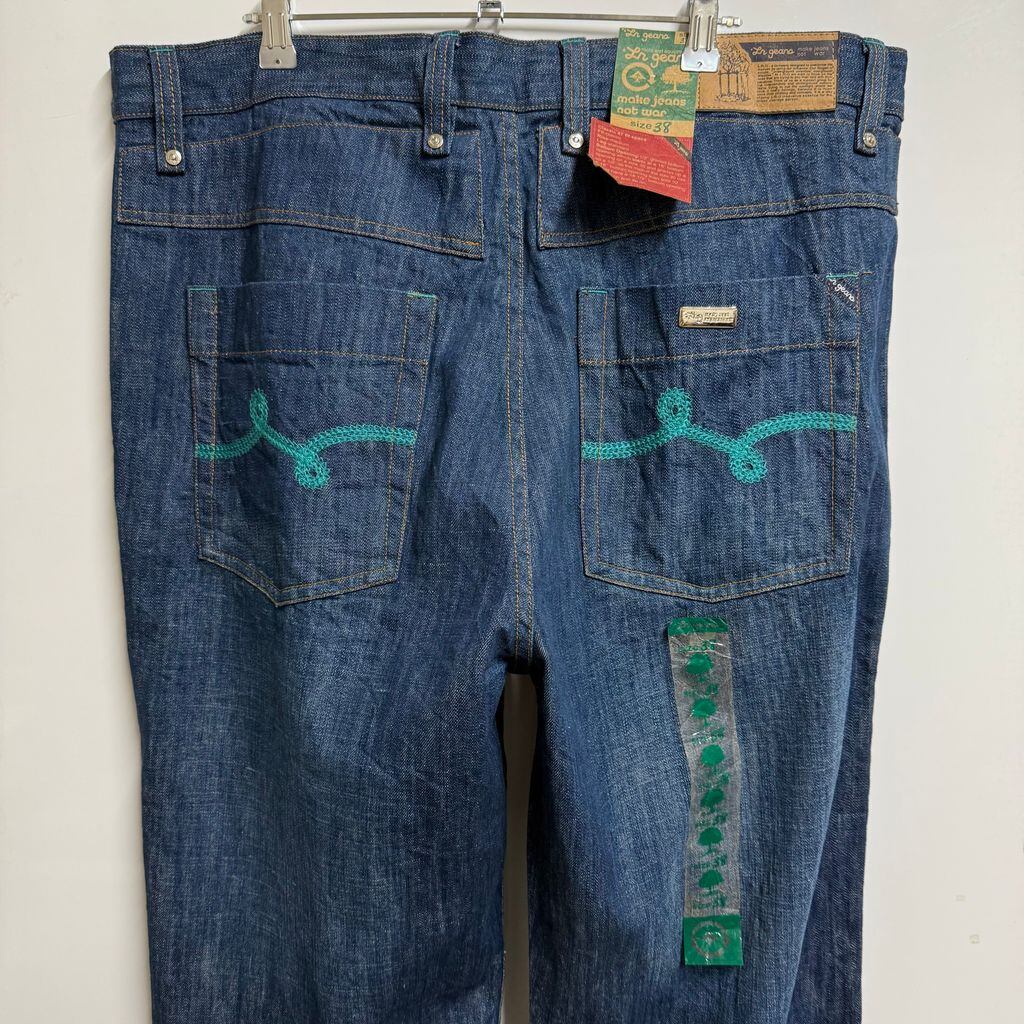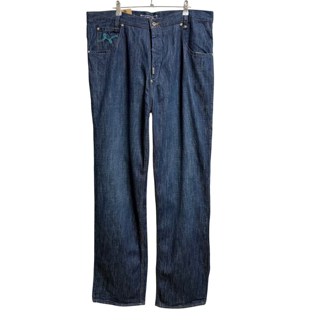 (デッドストック) LRG デニムパンツ ボタンフライ 刺繍ポケット コットンパンツ 青 ブルー サイズ38 ビッグサイズ No.H871