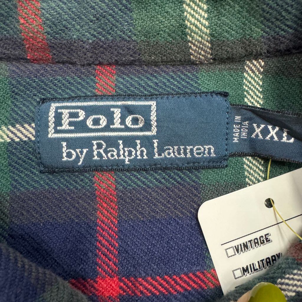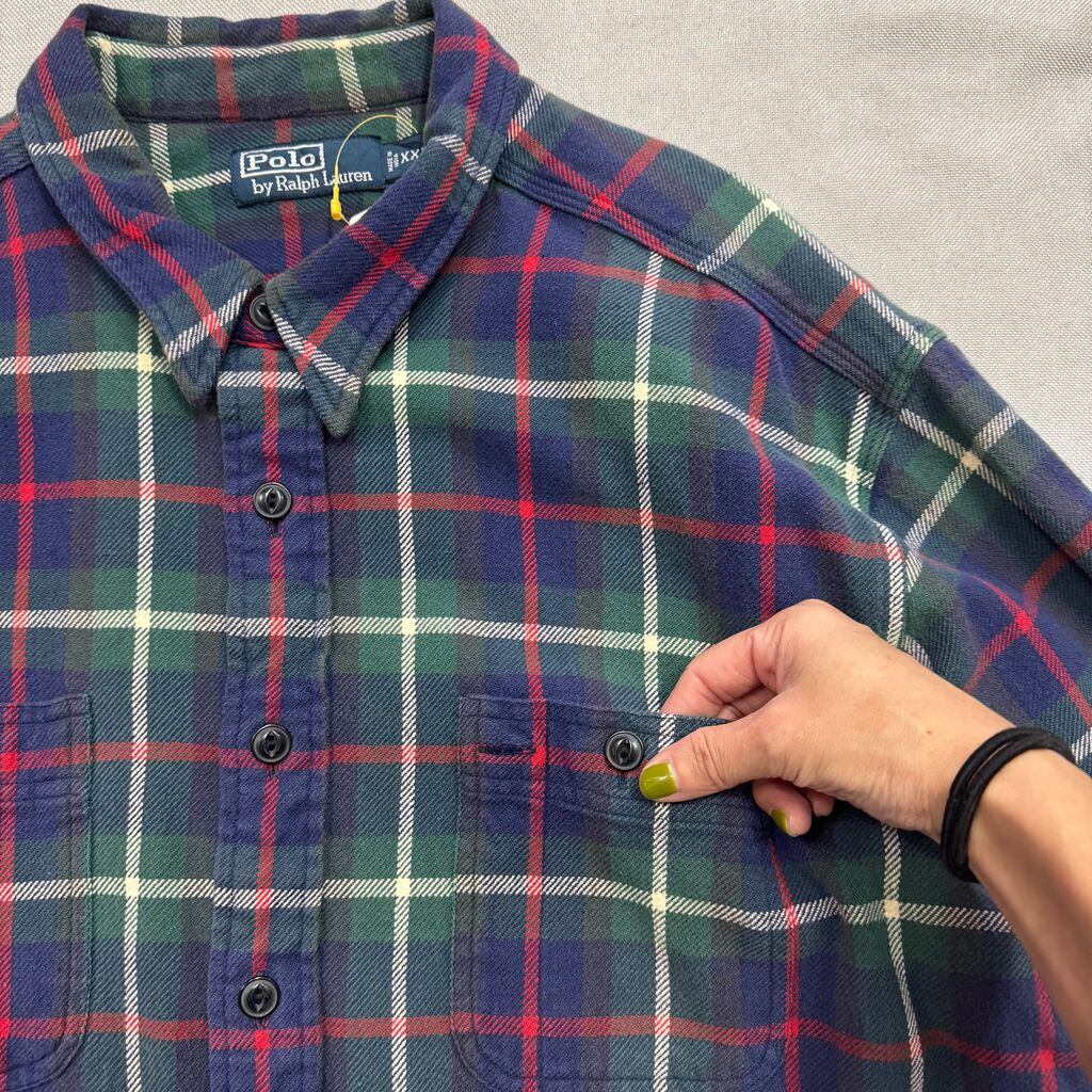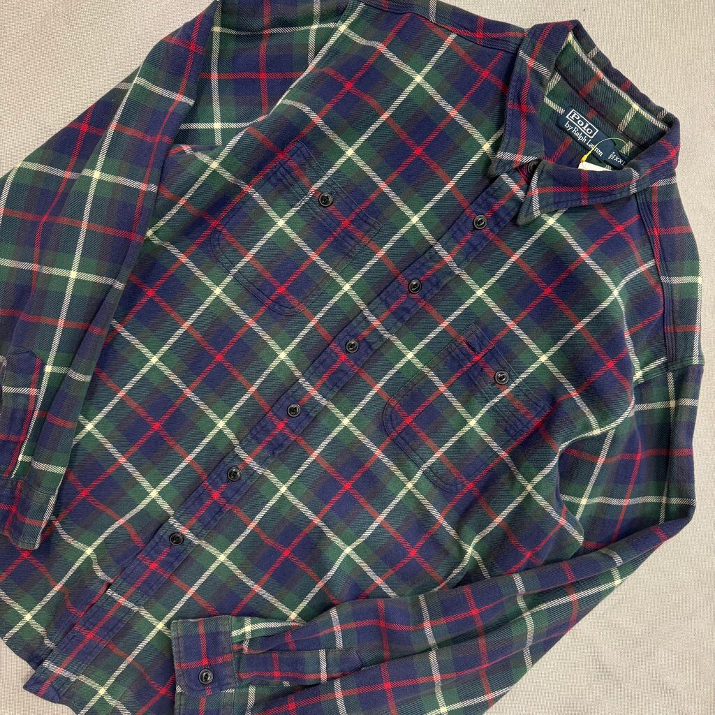 Polo by Ralph Lauren チェック柄 ポケット付き ポニー無し 長袖シャツ 赤×紺×緑×白 XXLサイズ No.E836