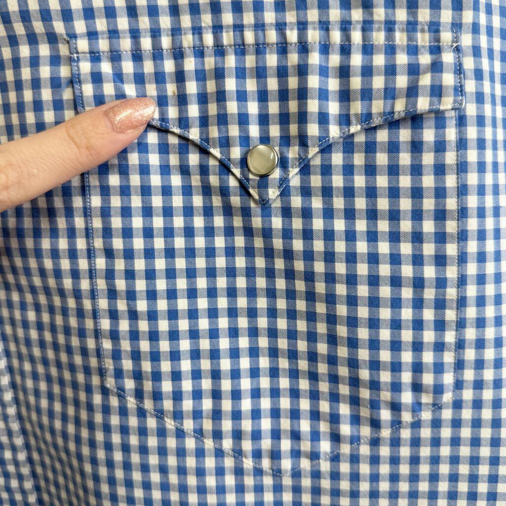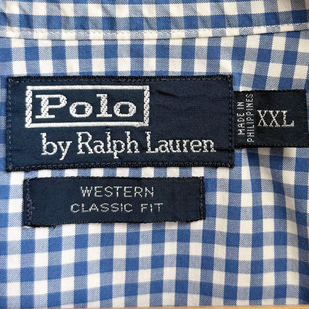 Polo Ralph Lauren ポロ ラルフローレン WESTERN CLASSIC FIT ウエスタンシャツ スナップボタン コットンシャツ チェック柄 ポケット付き 長袖シャツ 白×青 XXLサイズ No.H880