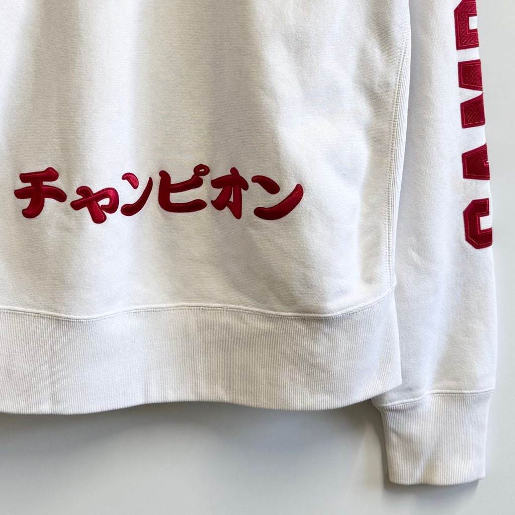Champion チャンピオン ロゴ刺繍 ワッペン フーディー パーカー ポケット付き 白 ホワイト 2XLサイズ No.H906