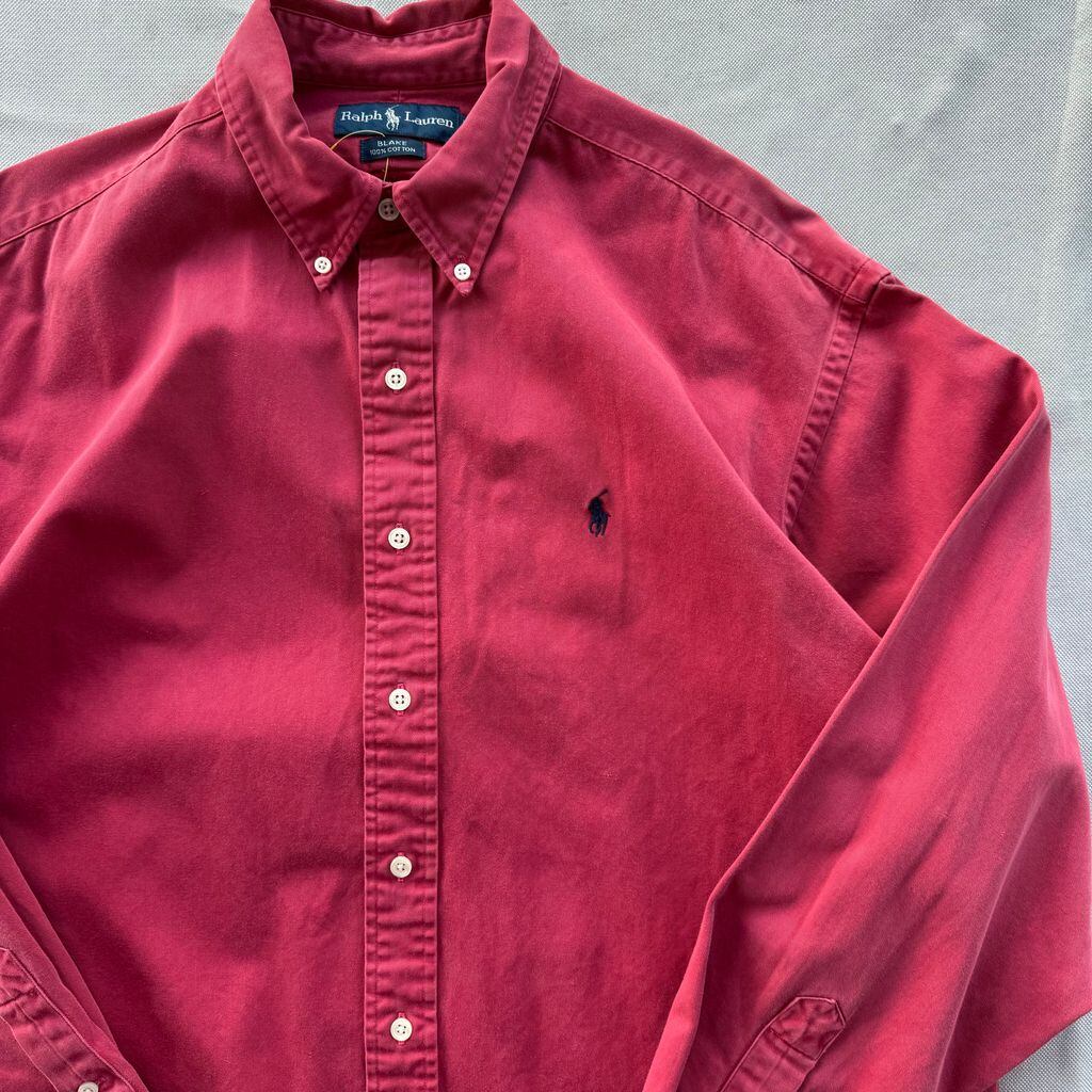 Ralph Lauren BLAKE 100% COTTON ラルフローレン ボタンダウン 長袖シャツ 赤 Lサイズ No.E849