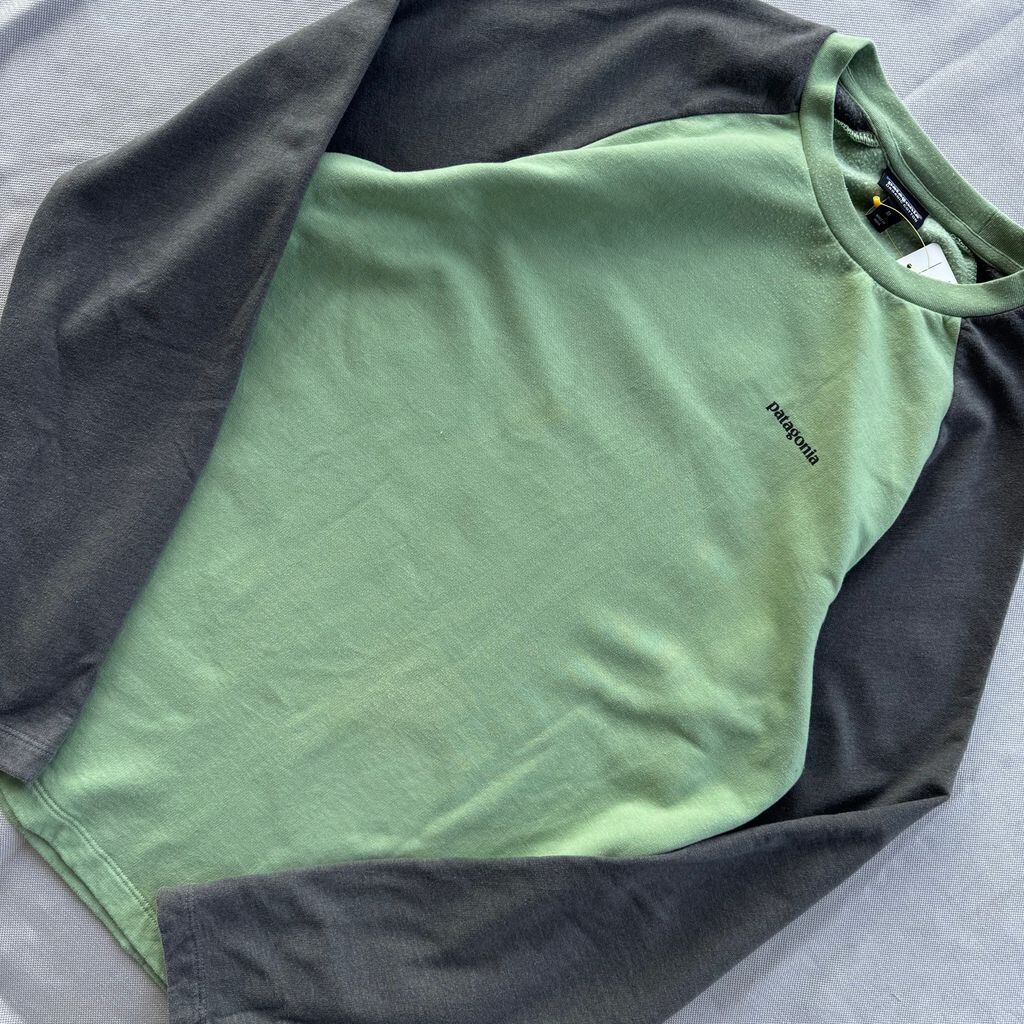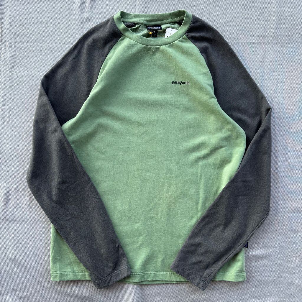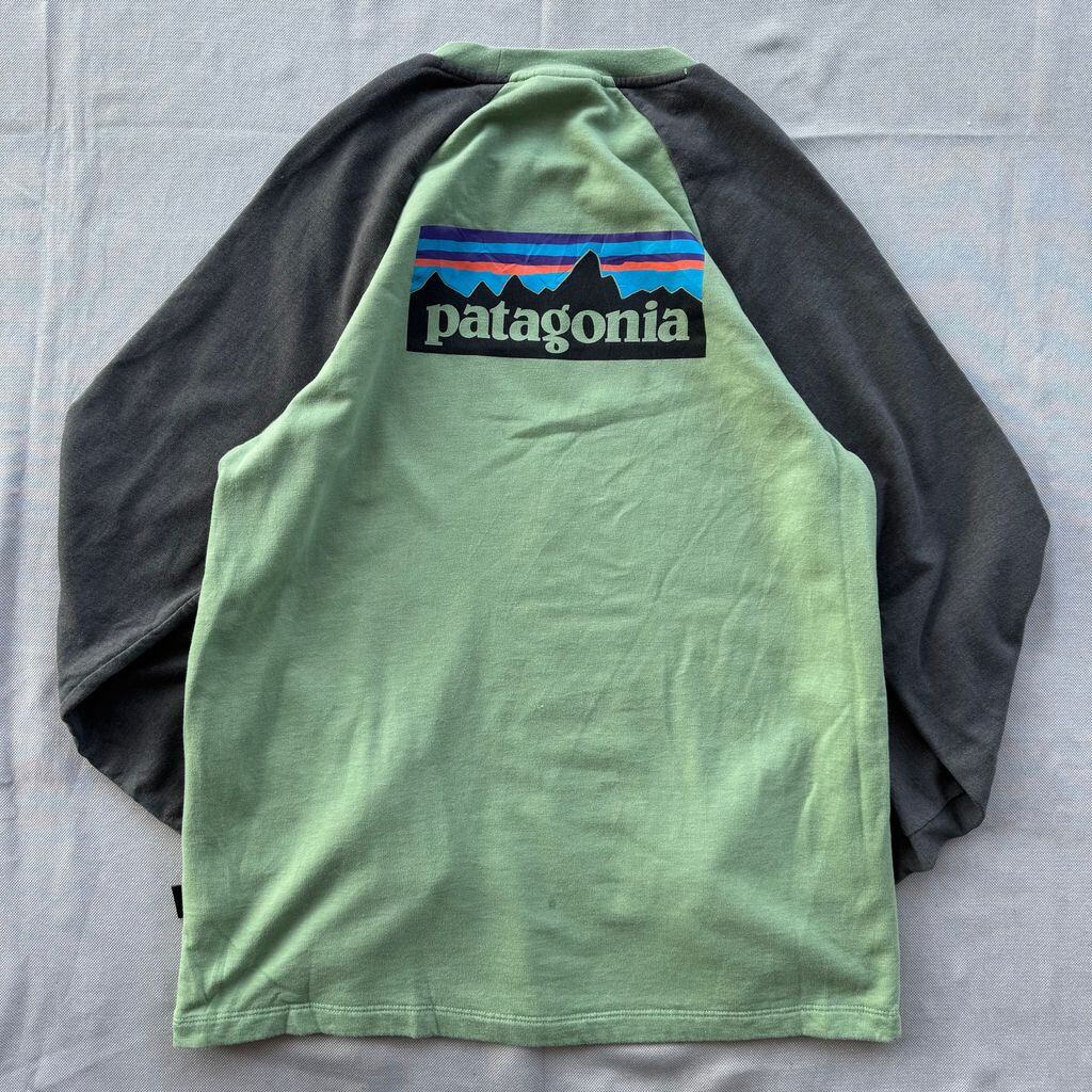 patagonia パタゴニア メンズ P-6 ロゴ ライトウェイト クルー スウェットシャツ グレー×グリーン Mサイズ No.E852