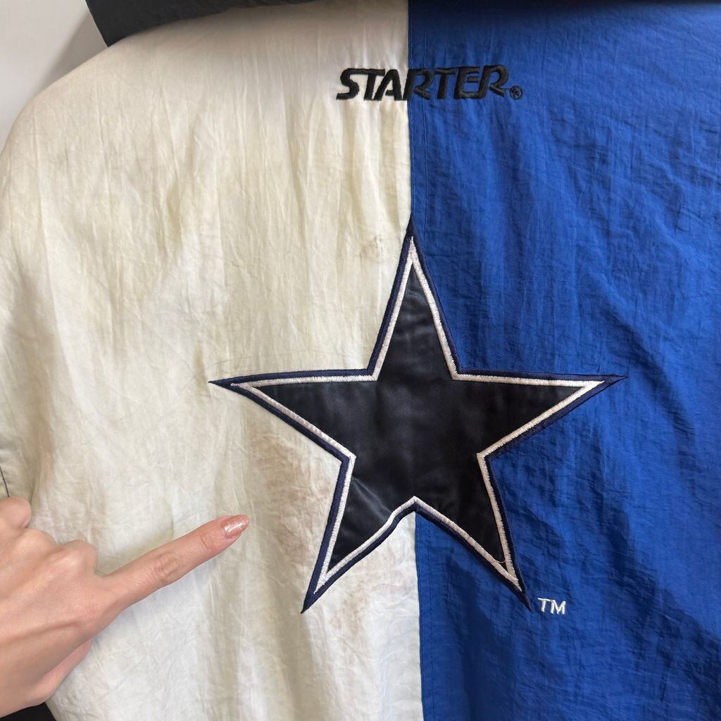 STARTER スターター NFL ナイロンアノラックパーカー ナイロンジャケット 中綿ジャケット プルオーバー ハーフジップ サイドジッパー ダラス カウボーイズ ロゴ刺繍 黒×白×青 Mサイズ No.H941