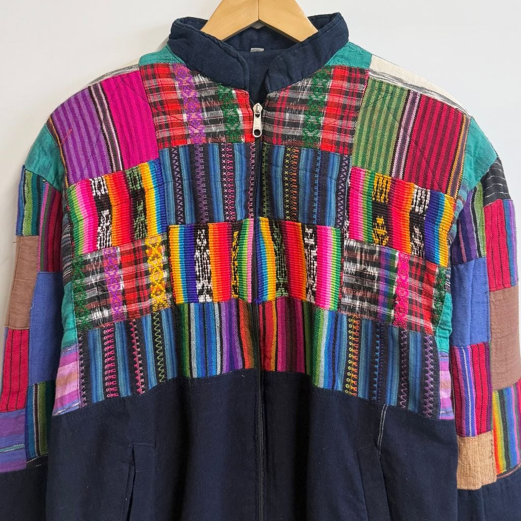 パッチワークジャケット グアテマラ エスニック 民族 ブルゾン フルジップ ポケット付き ネイビー×多色 カラフル No.H944