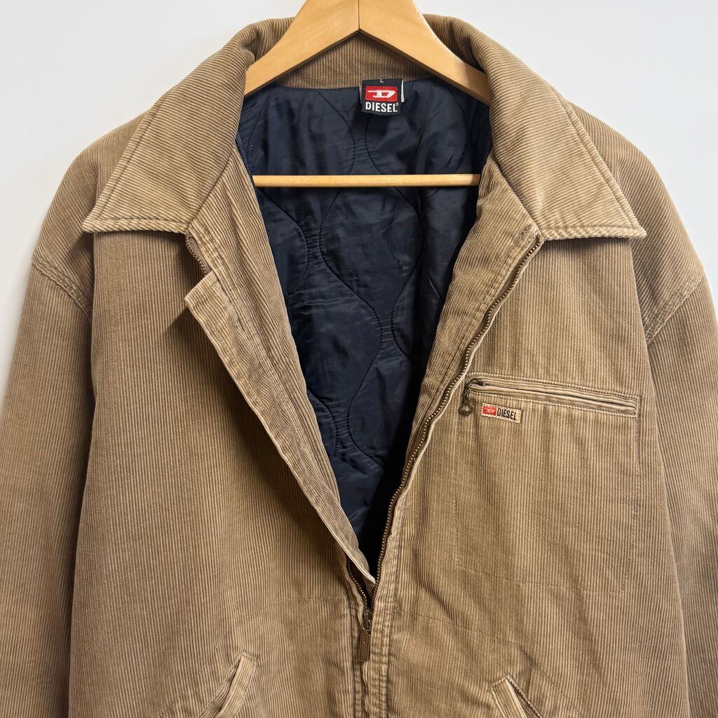 DIESEL ディーゼル コーデュロイジャケット キルティングライニング フルジップ ポケット付き ベージュ Lサイズ No.H947