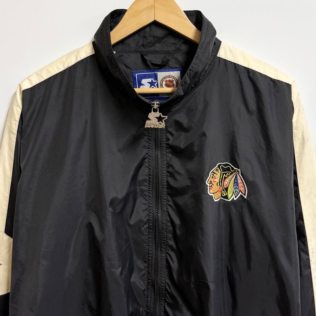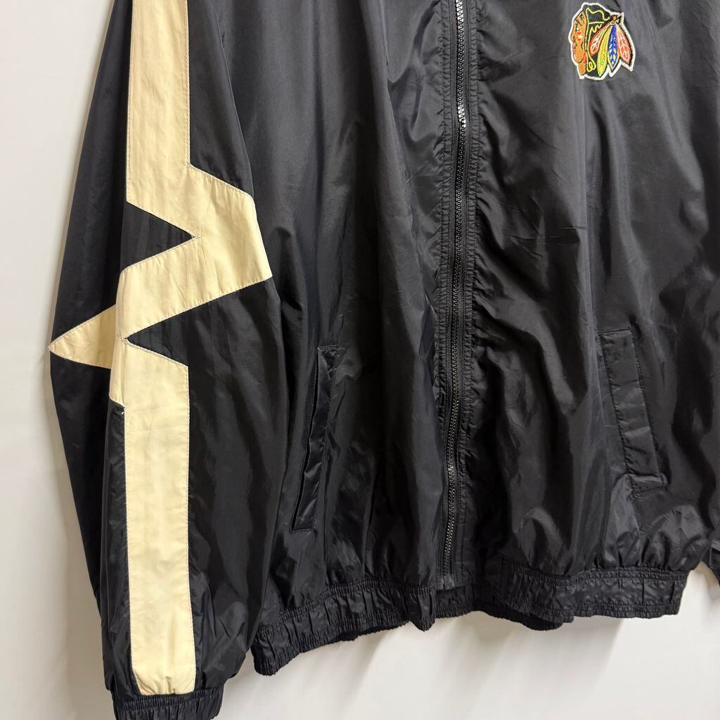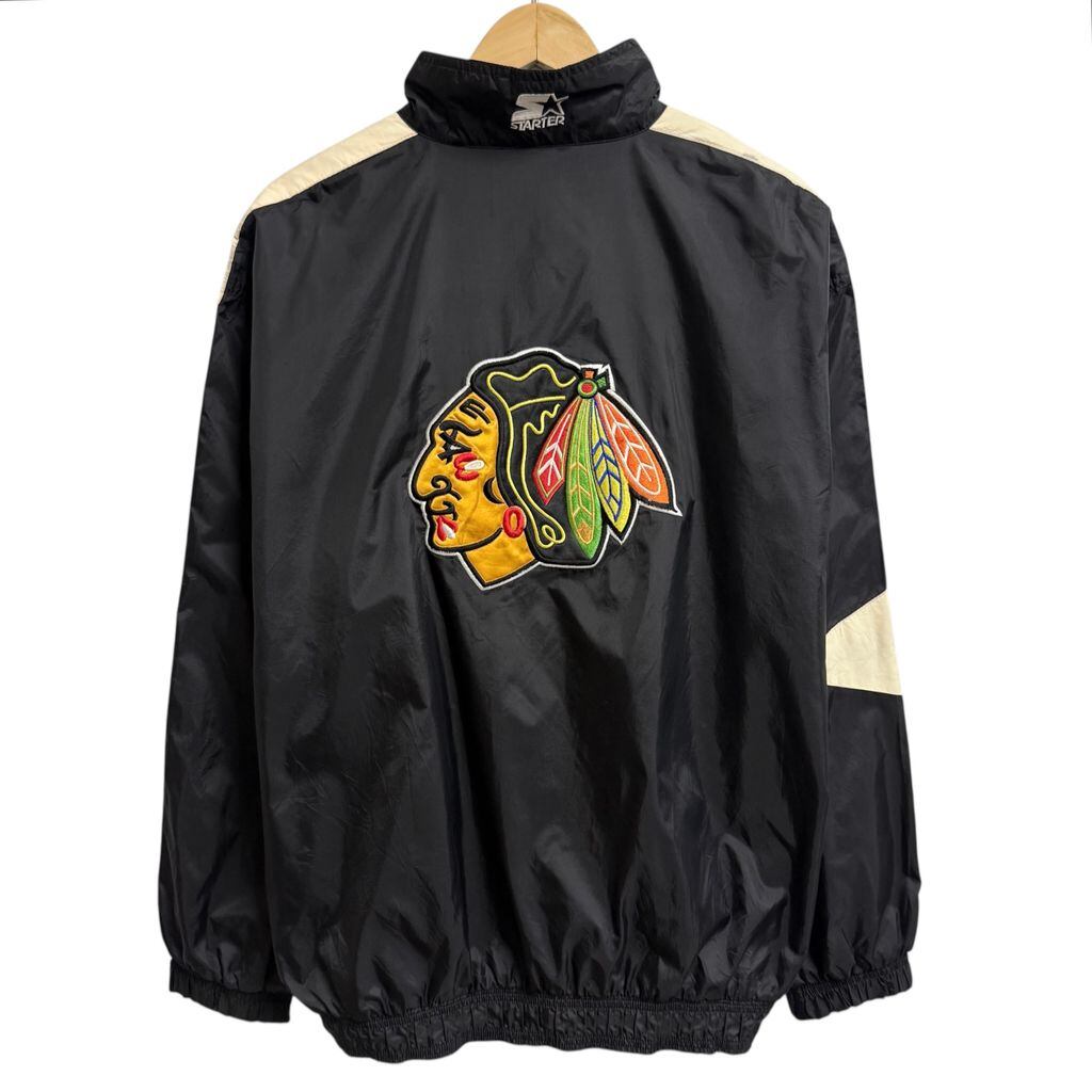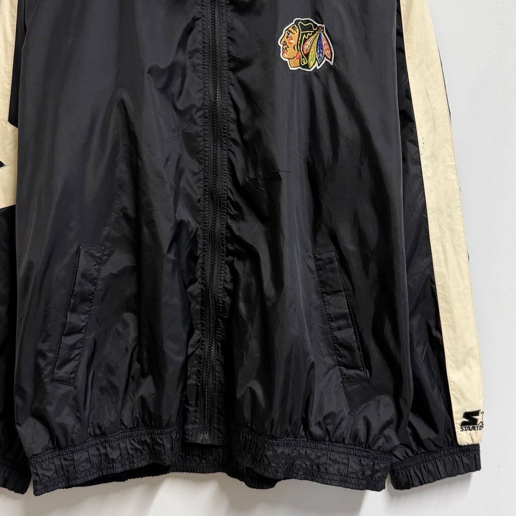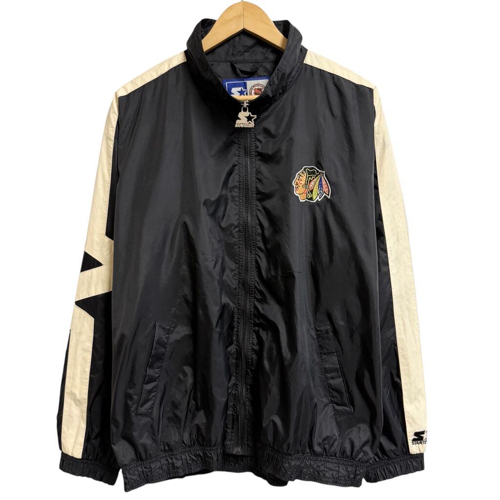 STARTER スターター NHL ナイロンジャケット シカゴブラックホークス ワッペン フルジップ ポケット付き 黒×白 Lサイズ No.H948