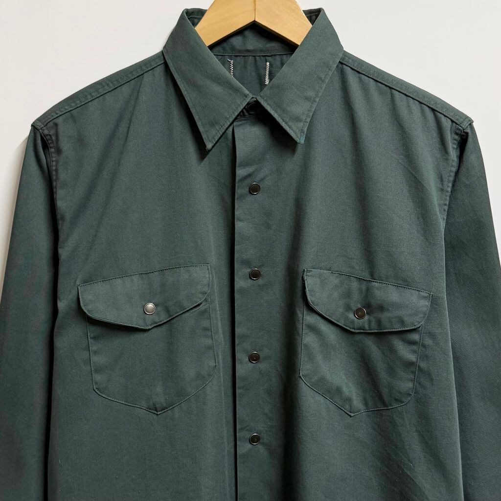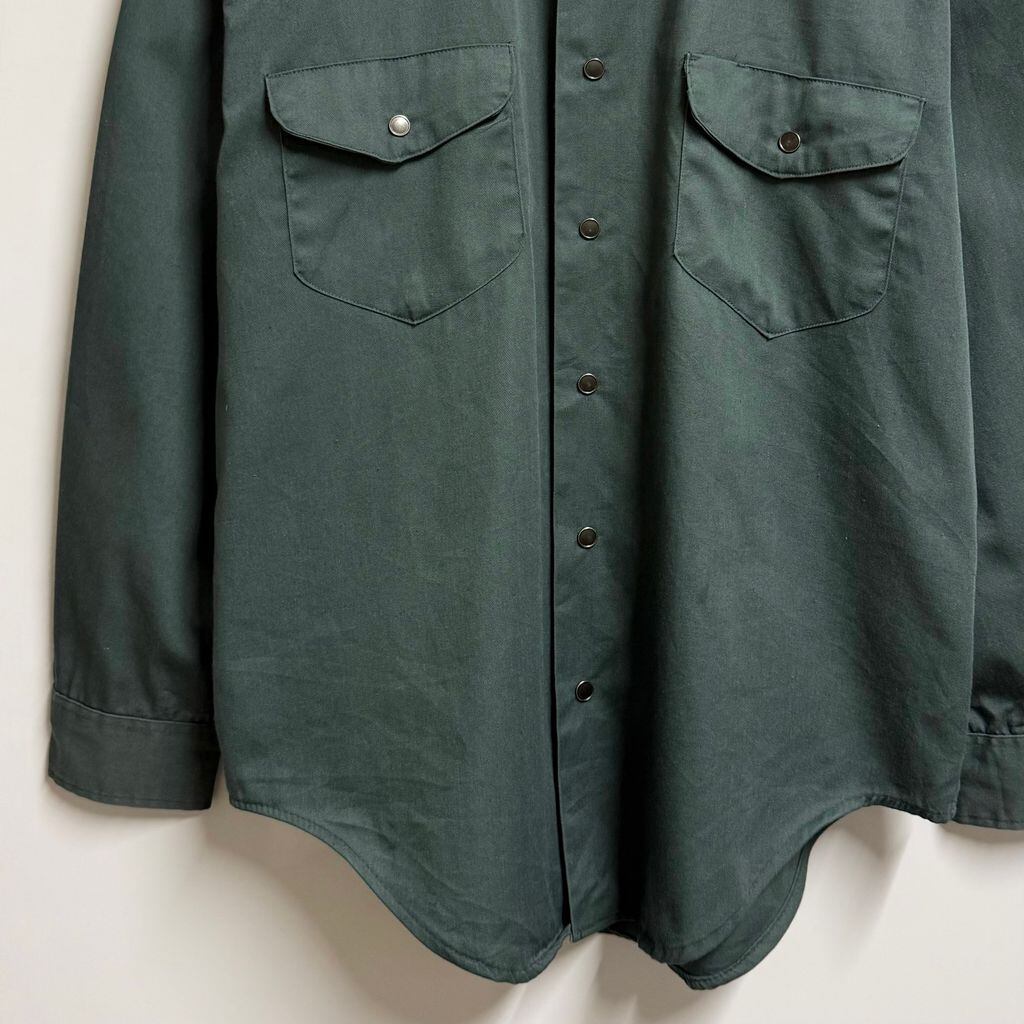 〜70's ユニチケ有り 無地 ポケット付き 長袖シャツ スナップボタン 深緑 ダークグリーン No.H970